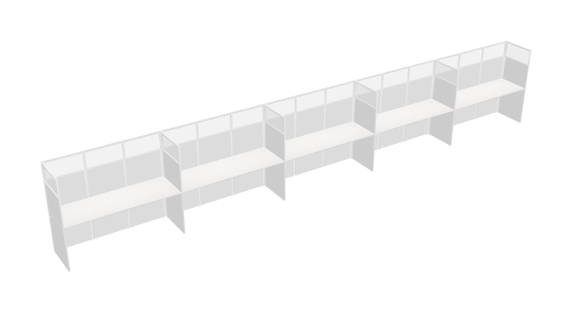 White Shared Rectangular Office Cubicle Panel System For 5 Persons
