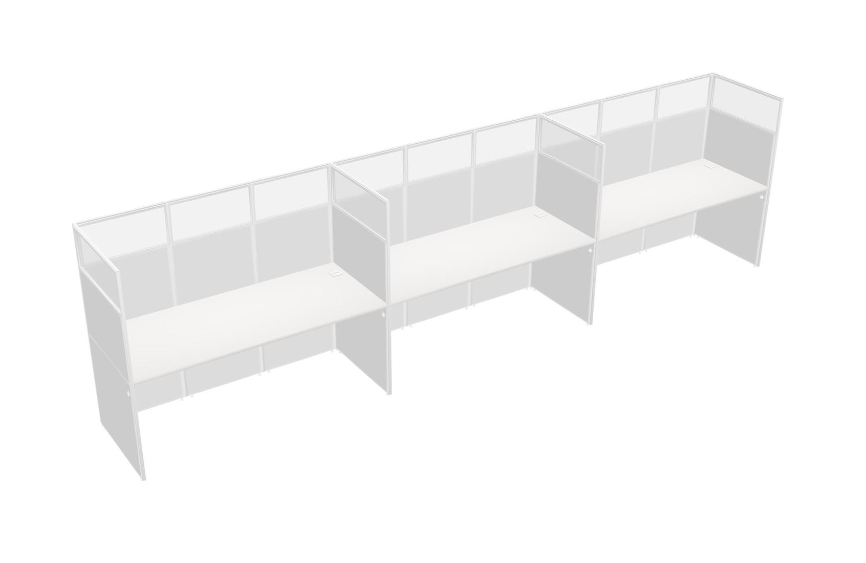 White Shared Rectangular Office Cubicle Panel System For 3 Persons