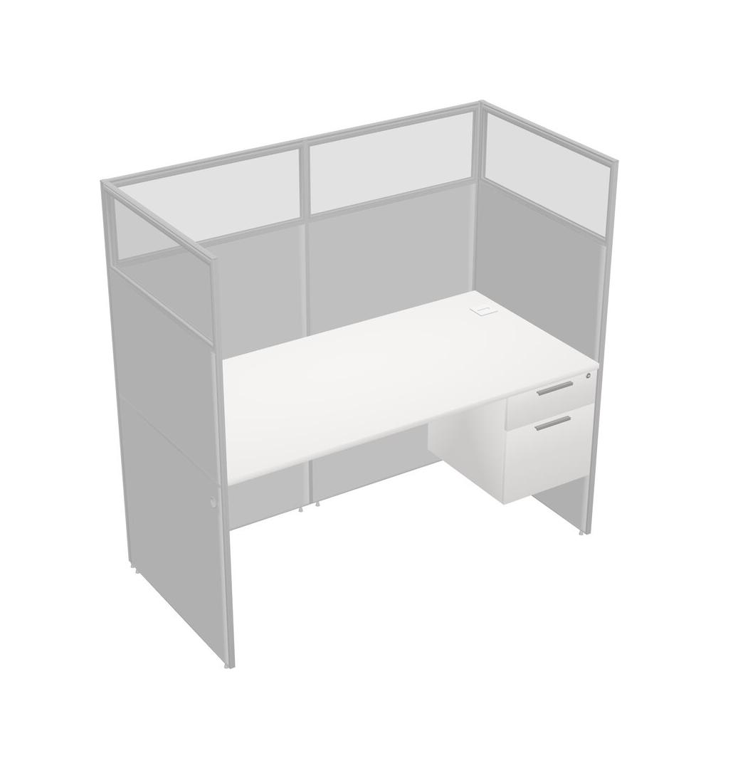 White Shared Rectangular Office Cubicle Panel System With Hanging Drawers For 1 Persons