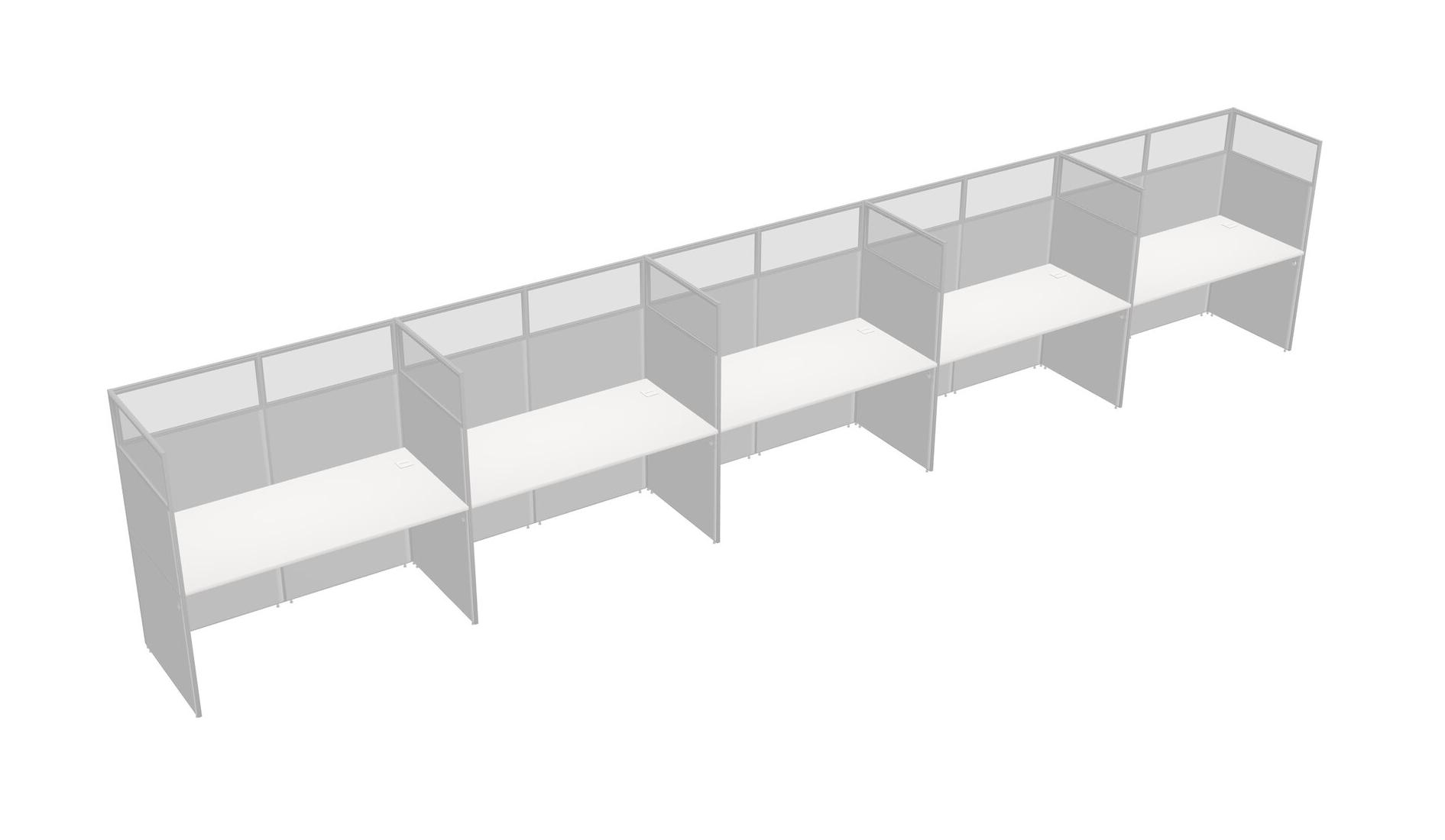 White Shared Rectangular Office Cubicle Panel System For 5 Persons