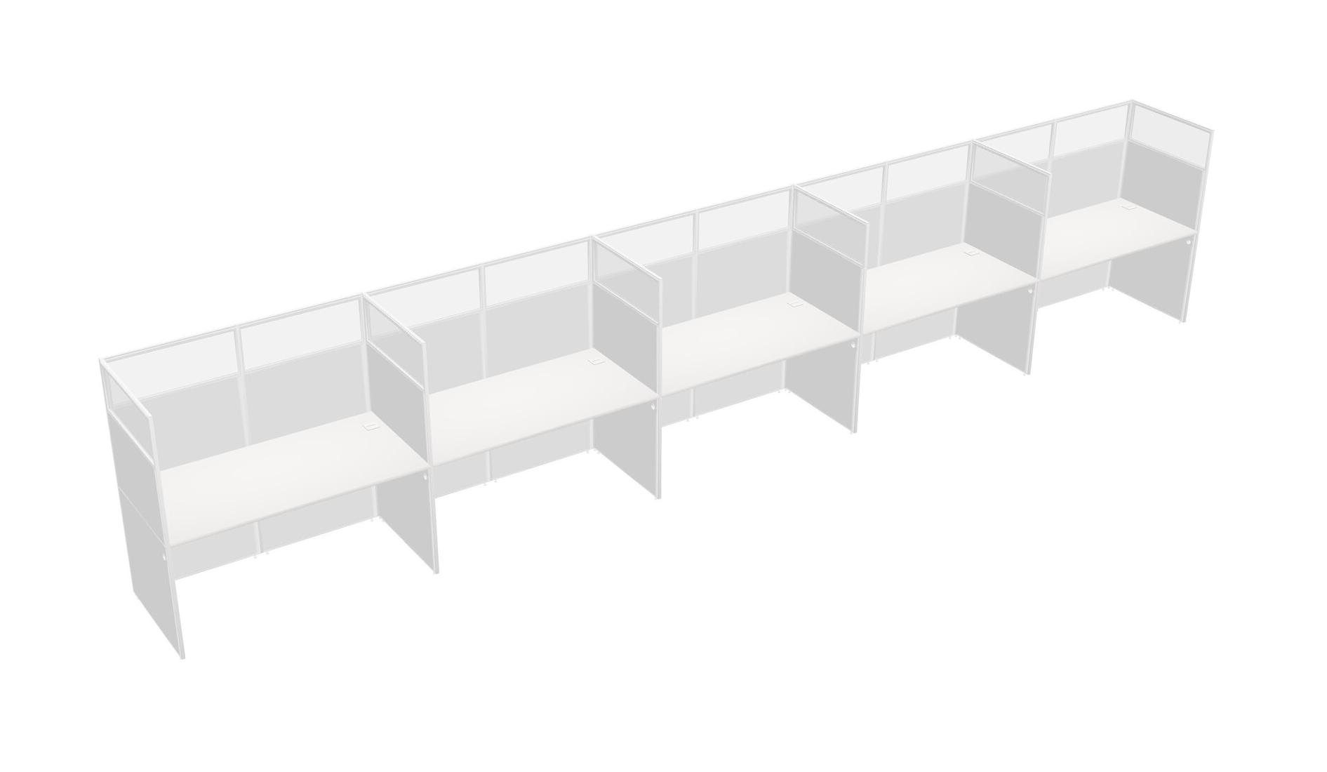 White Shared Rectangular Office Cubicle Panel System For 5 Persons