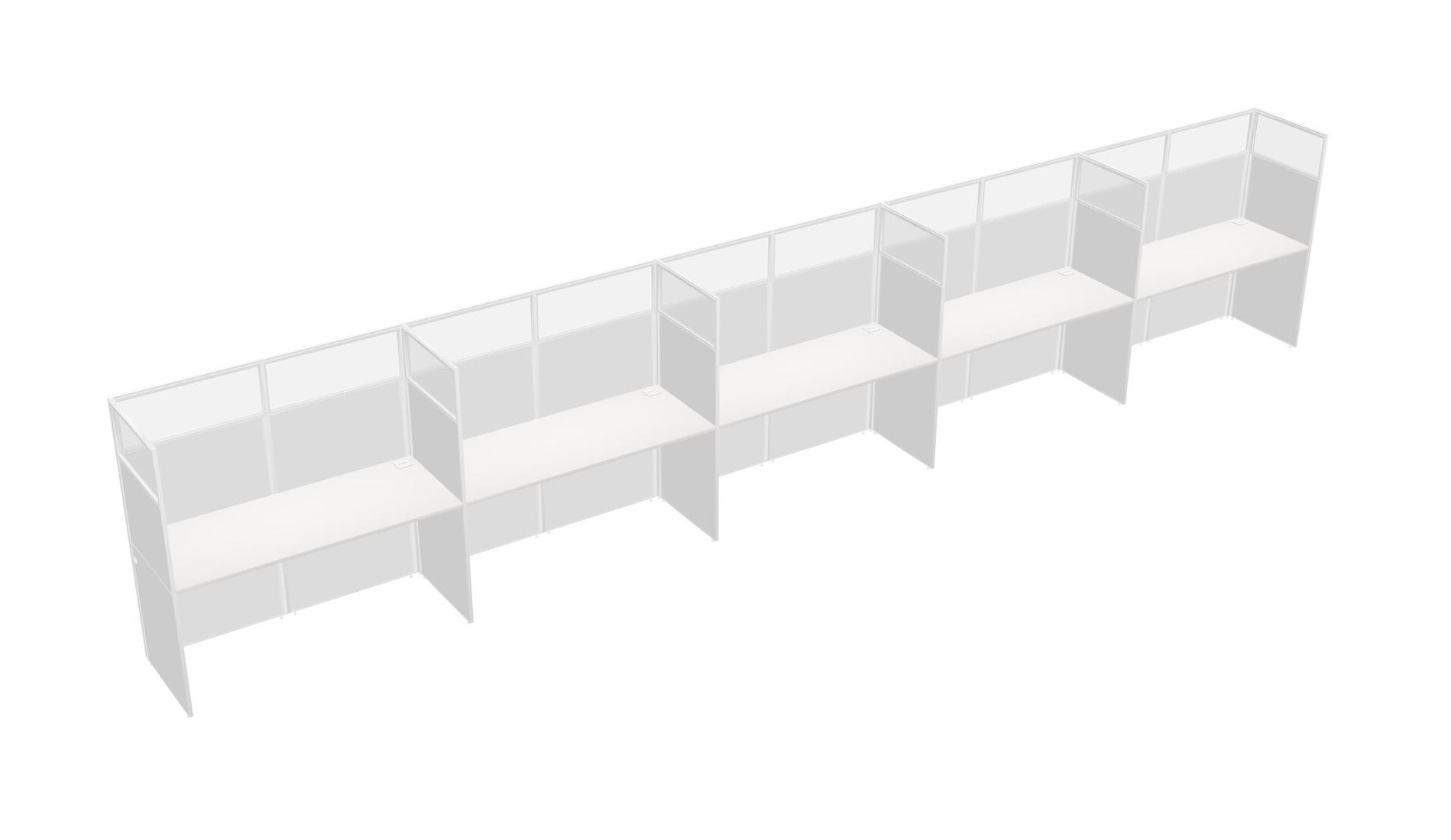 White Shared Rectangular Office Cubicle Panel System For 5 Persons