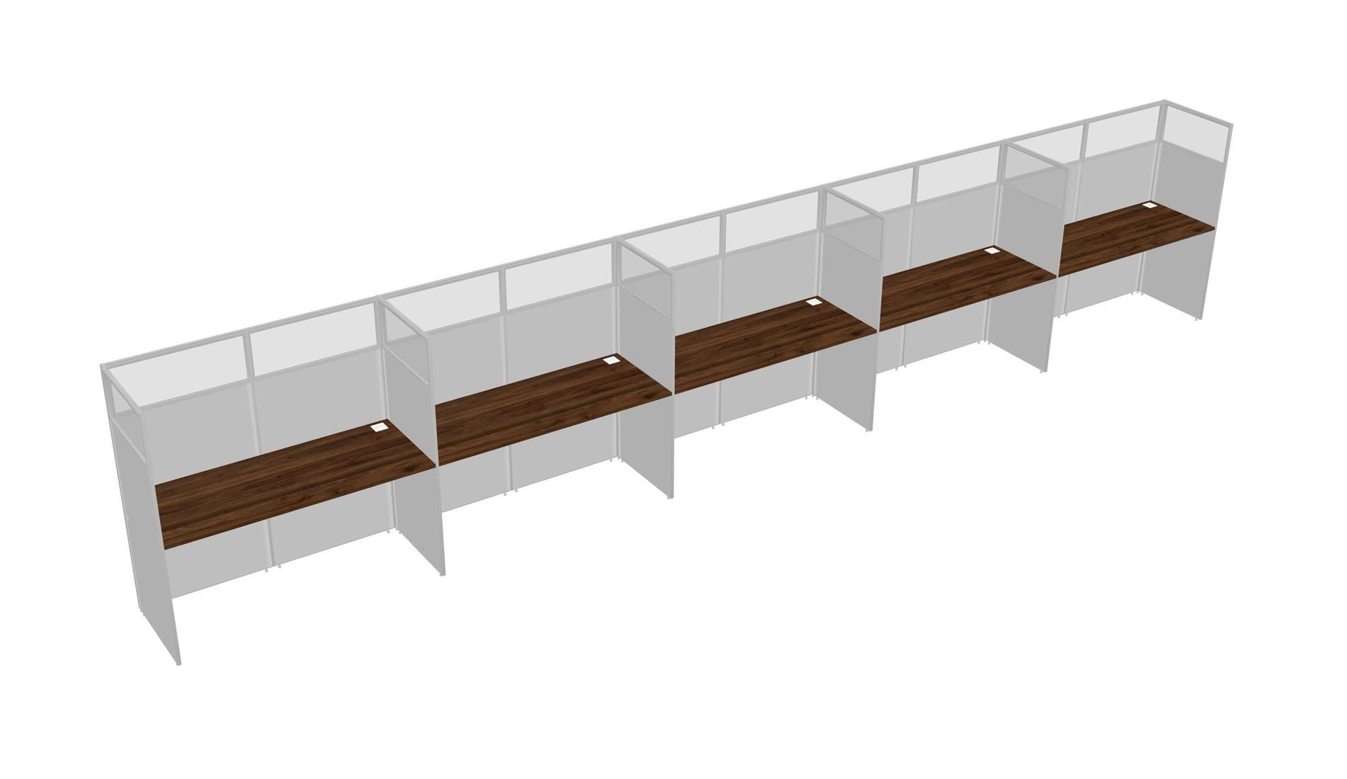 Columbia Walnut Shared Rectangular Office Cubicle Panel System For 5 Persons