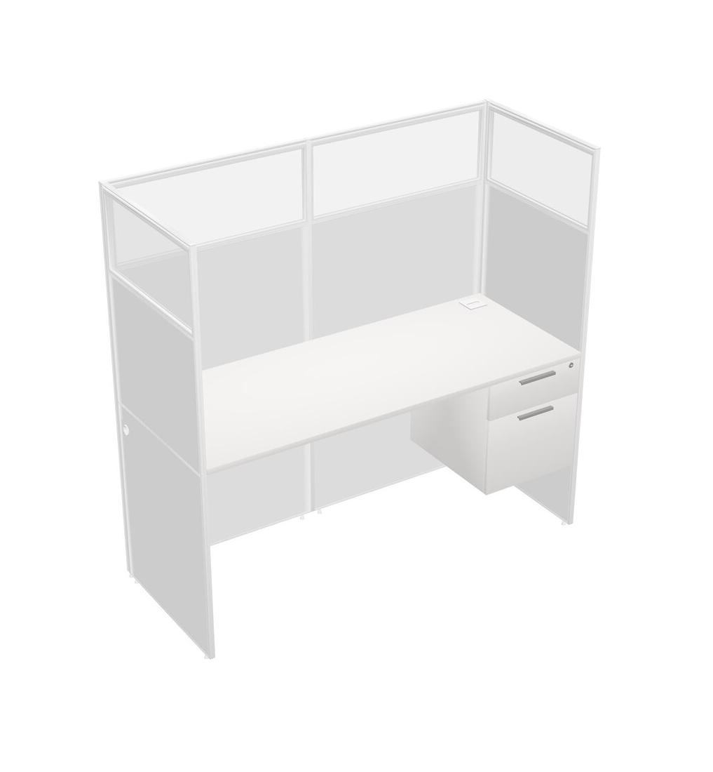 White Shared Rectangular Office Cubicle Panel System With Hanging Drawers For 1 Persons