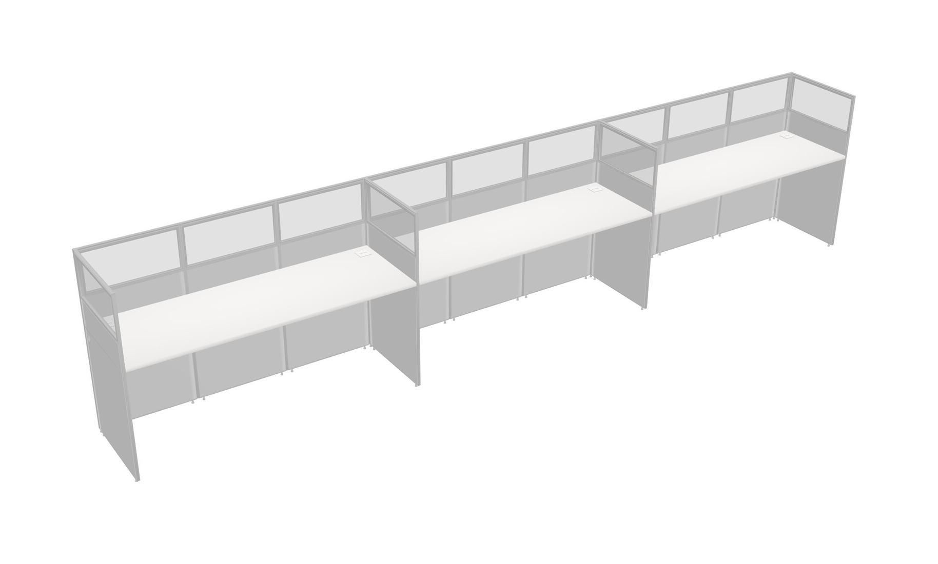 White Shared Rectangular Office Cubicle Panel System For 3 Persons