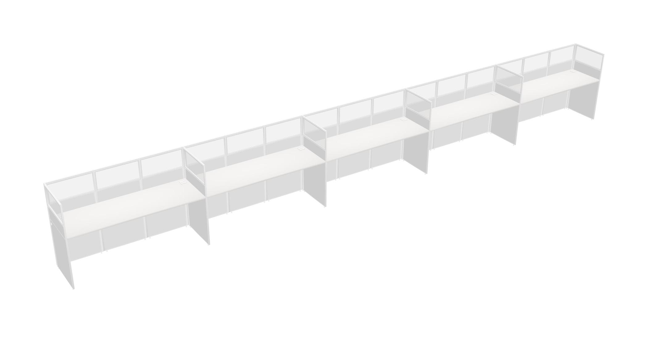 White Shared Rectangular Office Cubicle Panel System For 5 Persons