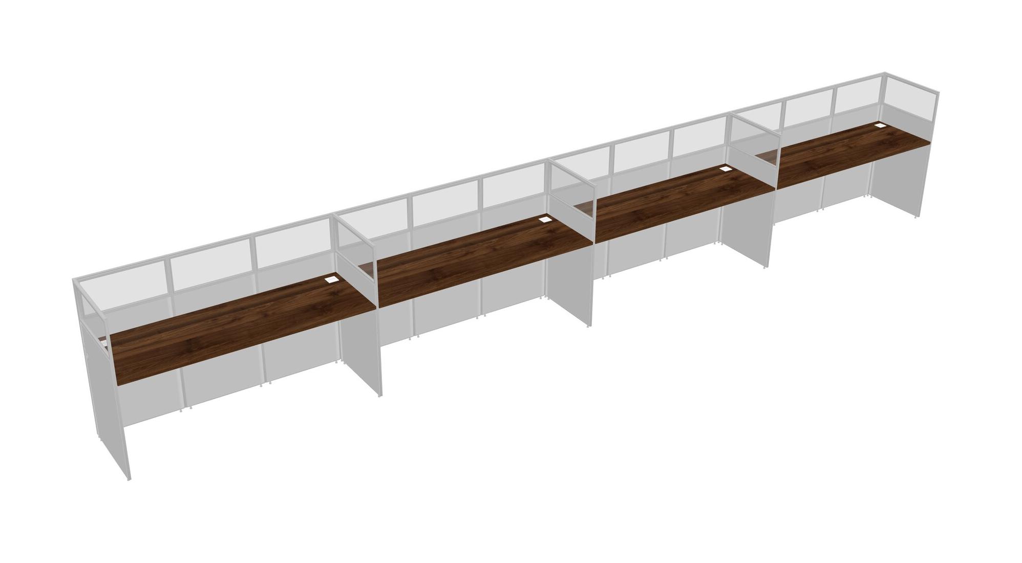 Columbia Walnut Shared Rectangular Office Cubicle Panel System For 4 Persons