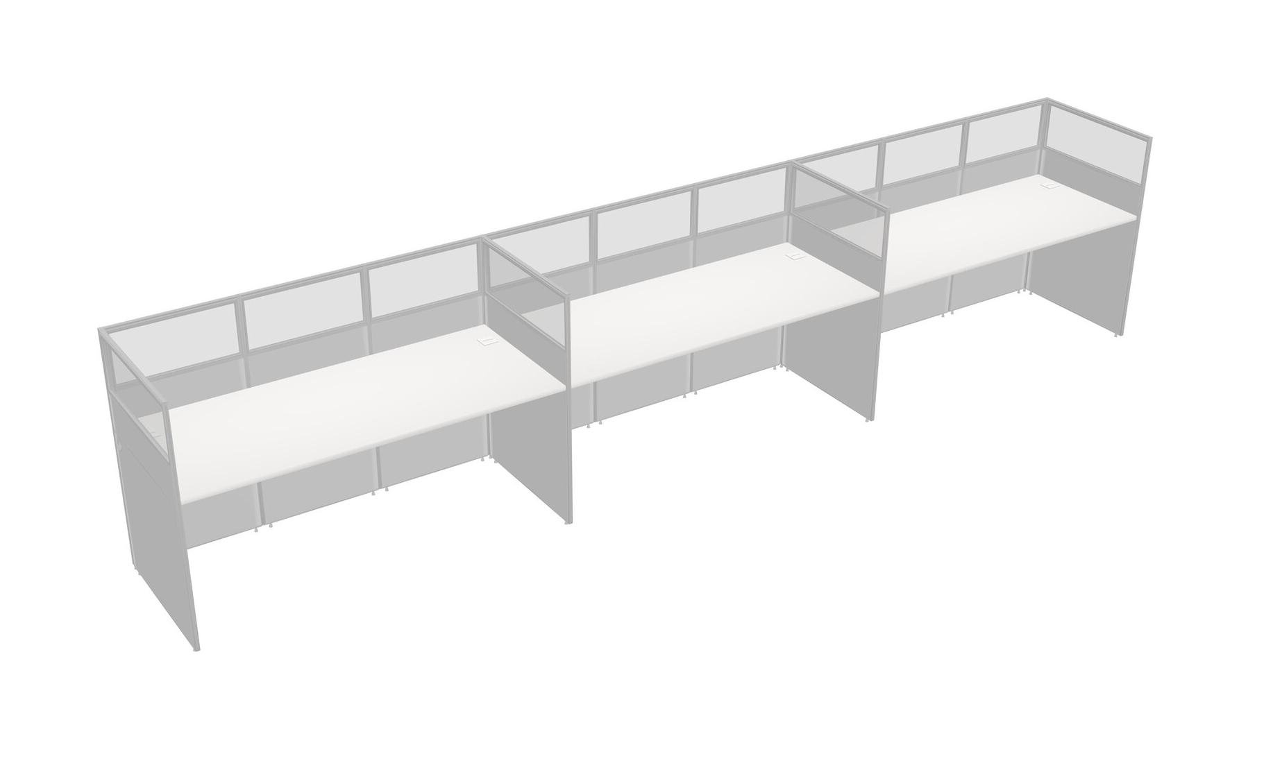 White Shared Rectangular Office Cubicle Panel System For 3 Persons