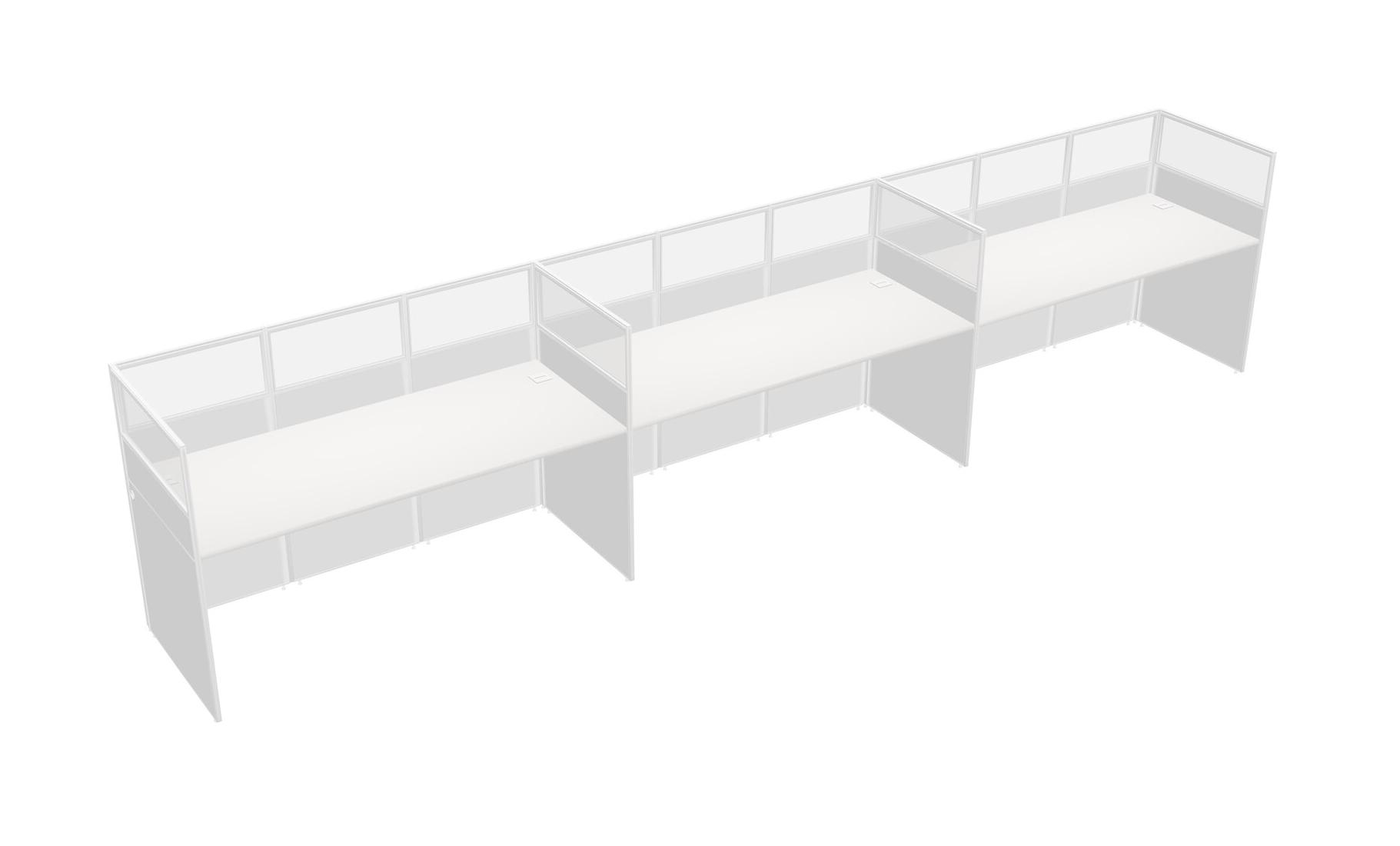 White Shared Rectangular Office Cubicle Panel System For 3 Persons