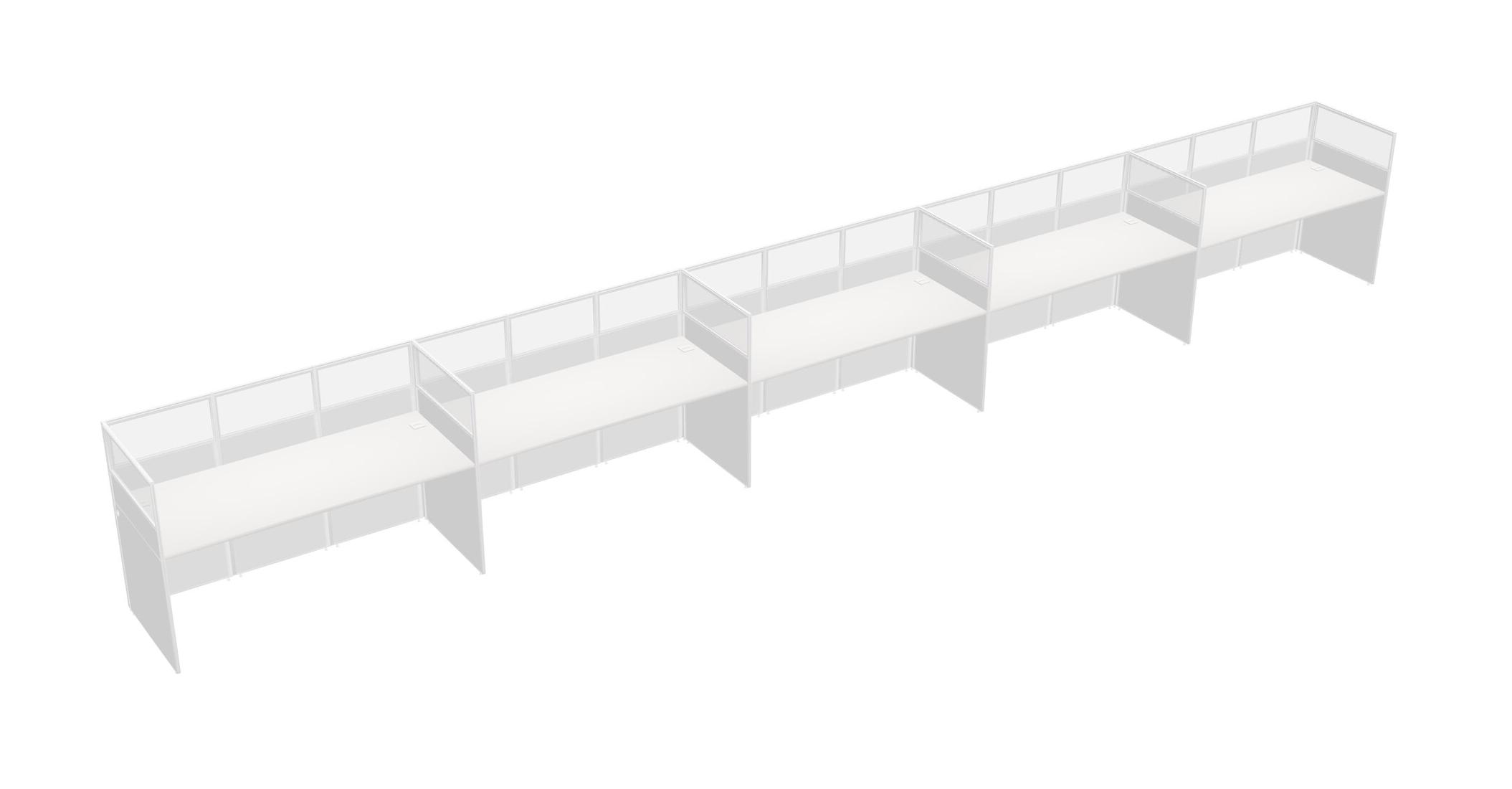 White Shared Rectangular Office Cubicle Panel System For 5 Persons