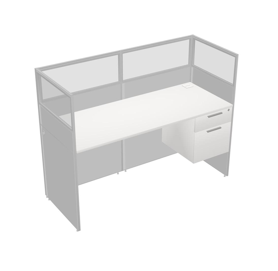 White Shared Rectangular Office Cubicle Panel System With Hanging Drawers For 1 Persons