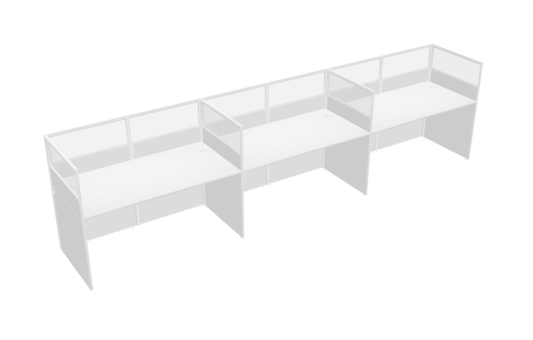White Shared Rectangular Office Cubicle Panel System For 3 Persons