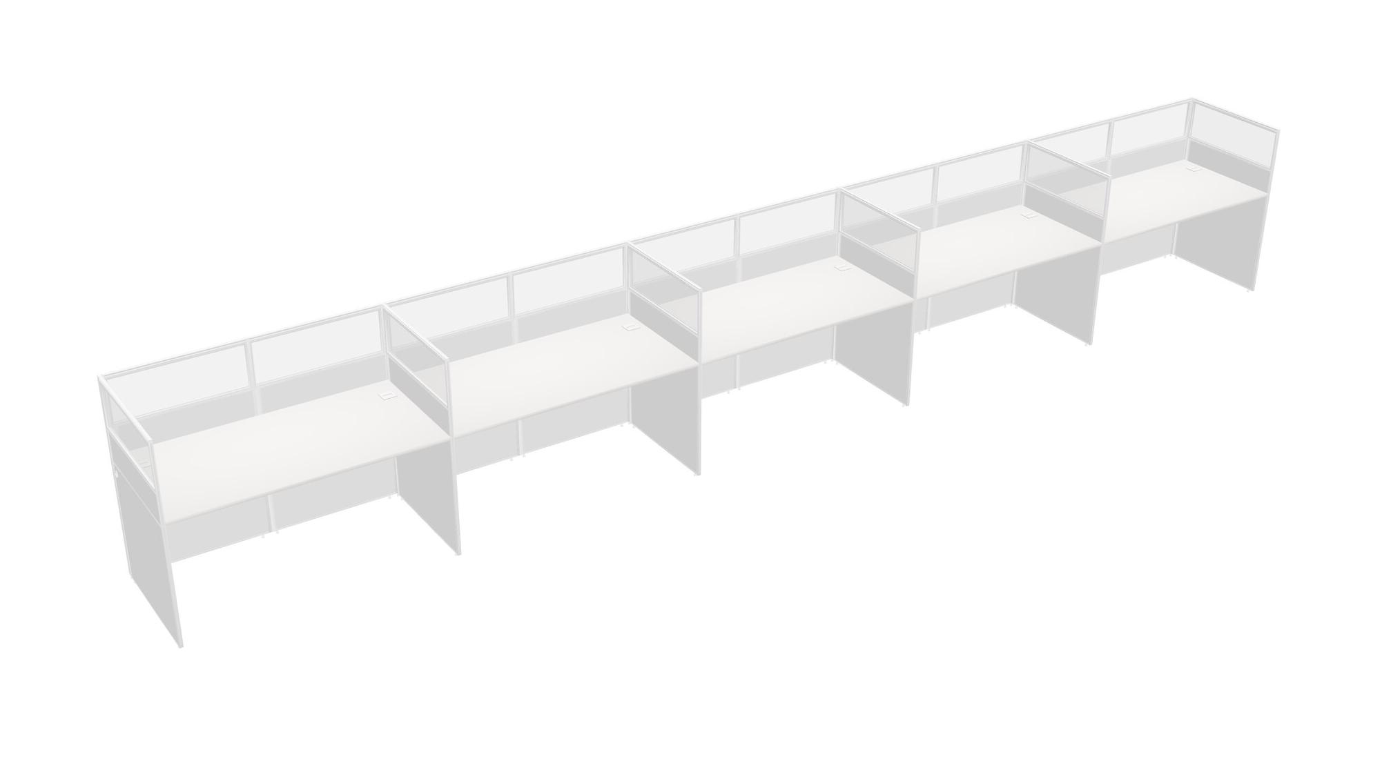 White Shared Rectangular Office Cubicle Panel System For 5 Persons
