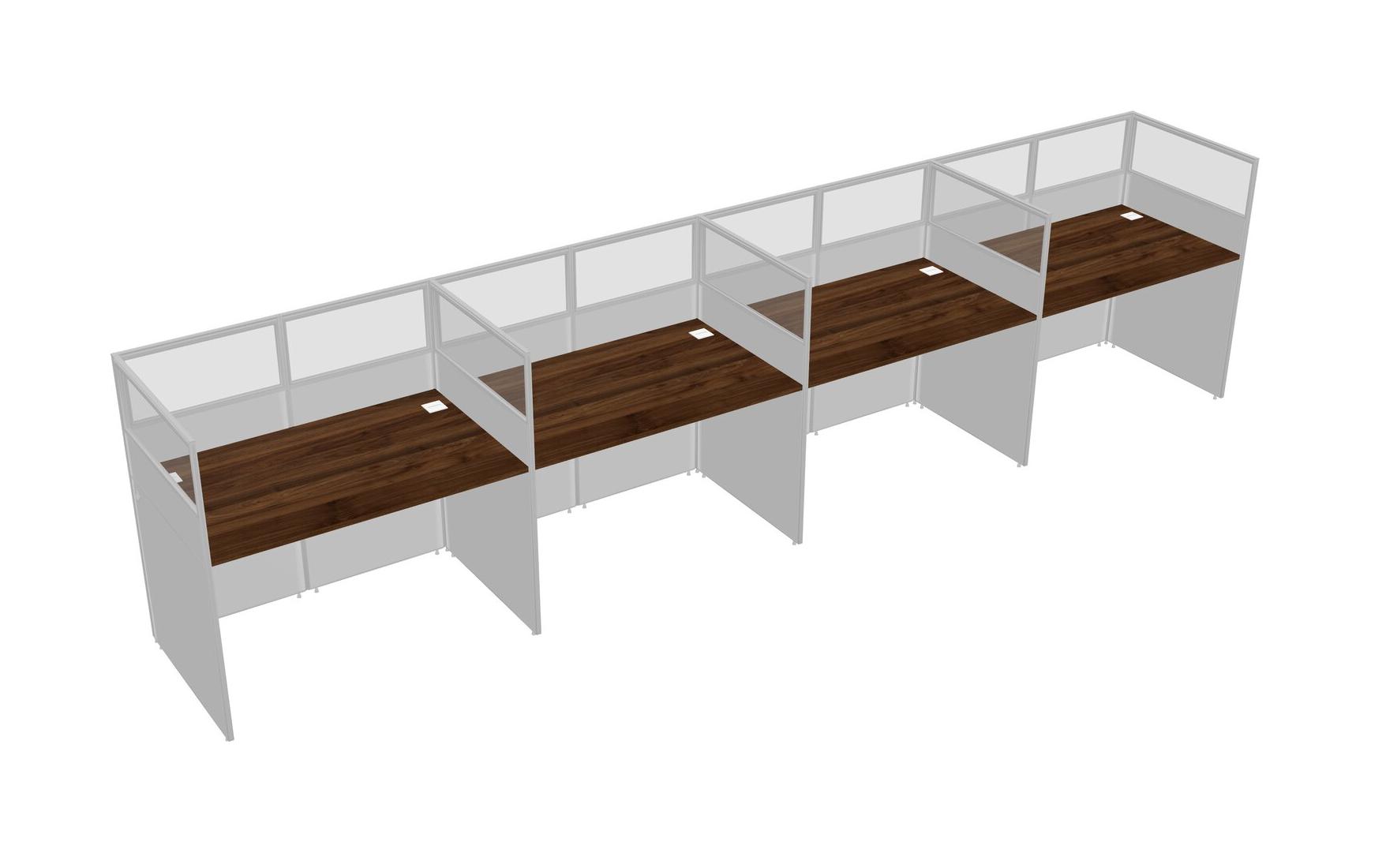 Columbia Walnut Shared Rectangular Office Cubicle Panel System For 4 Persons
