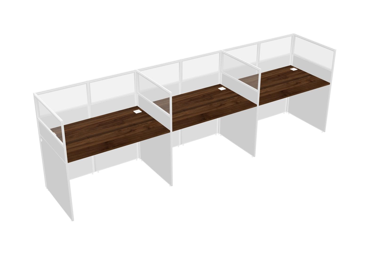 Columbia Walnut Shared Rectangular Office Cubicle Panel System For 3 Persons
