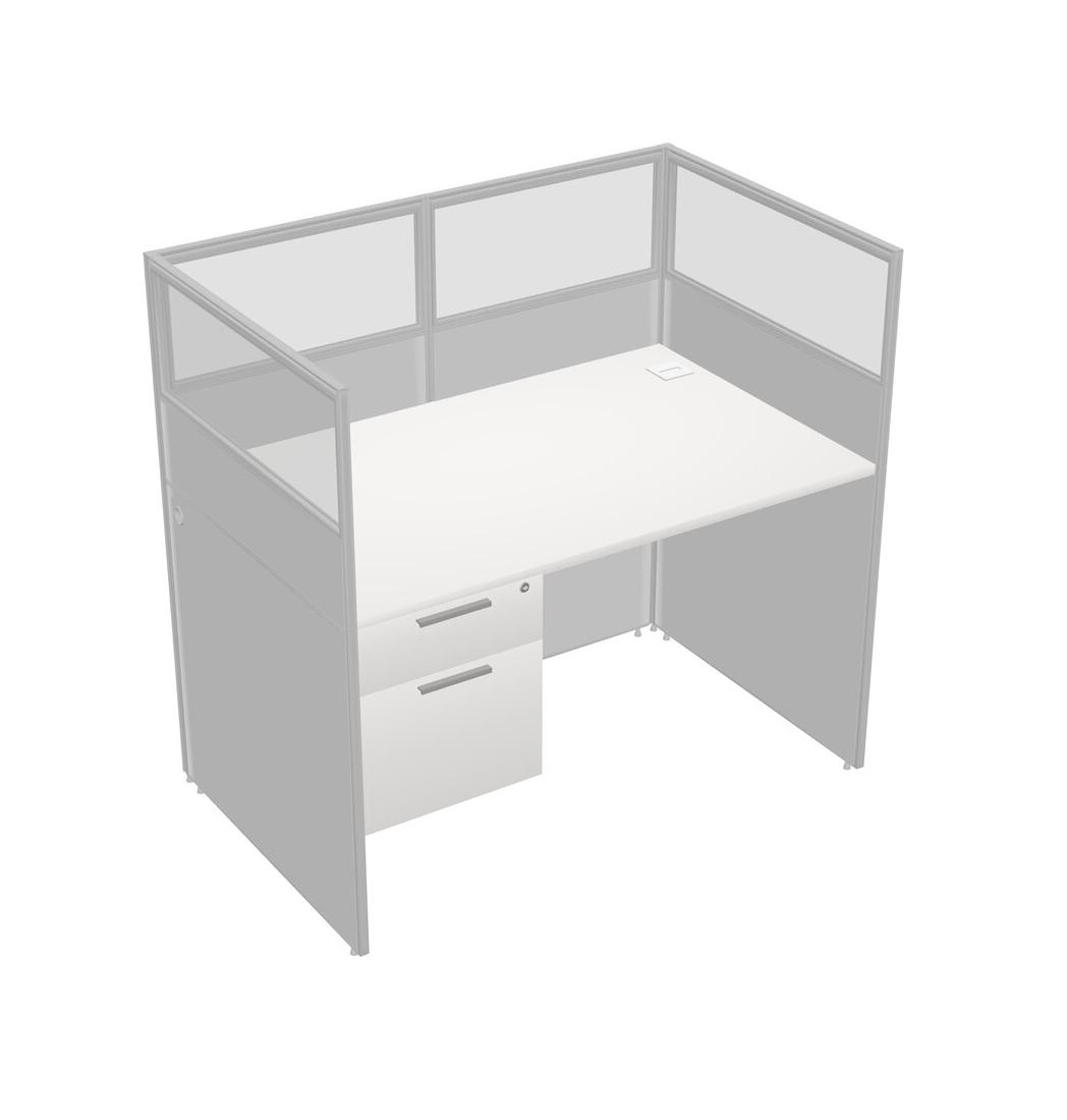 White Shared Rectangular Office Cubicle Panel System With Hanging Drawers For 1 Persons