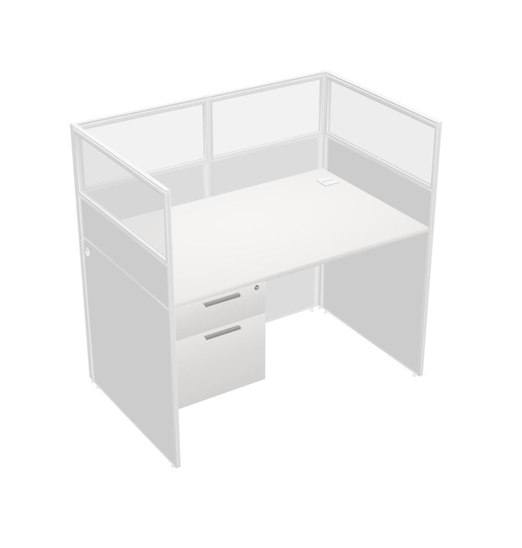 White Shared Rectangular Office Cubicle Panel System With Hanging Drawers For 1 Persons