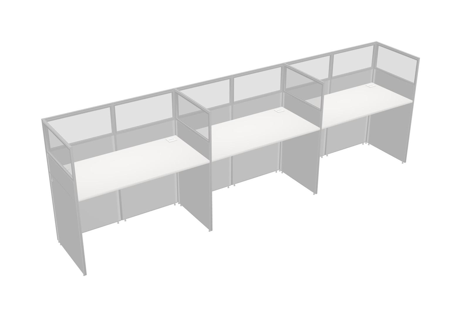 White Shared Rectangular Office Cubicle Panel System For 3 Persons