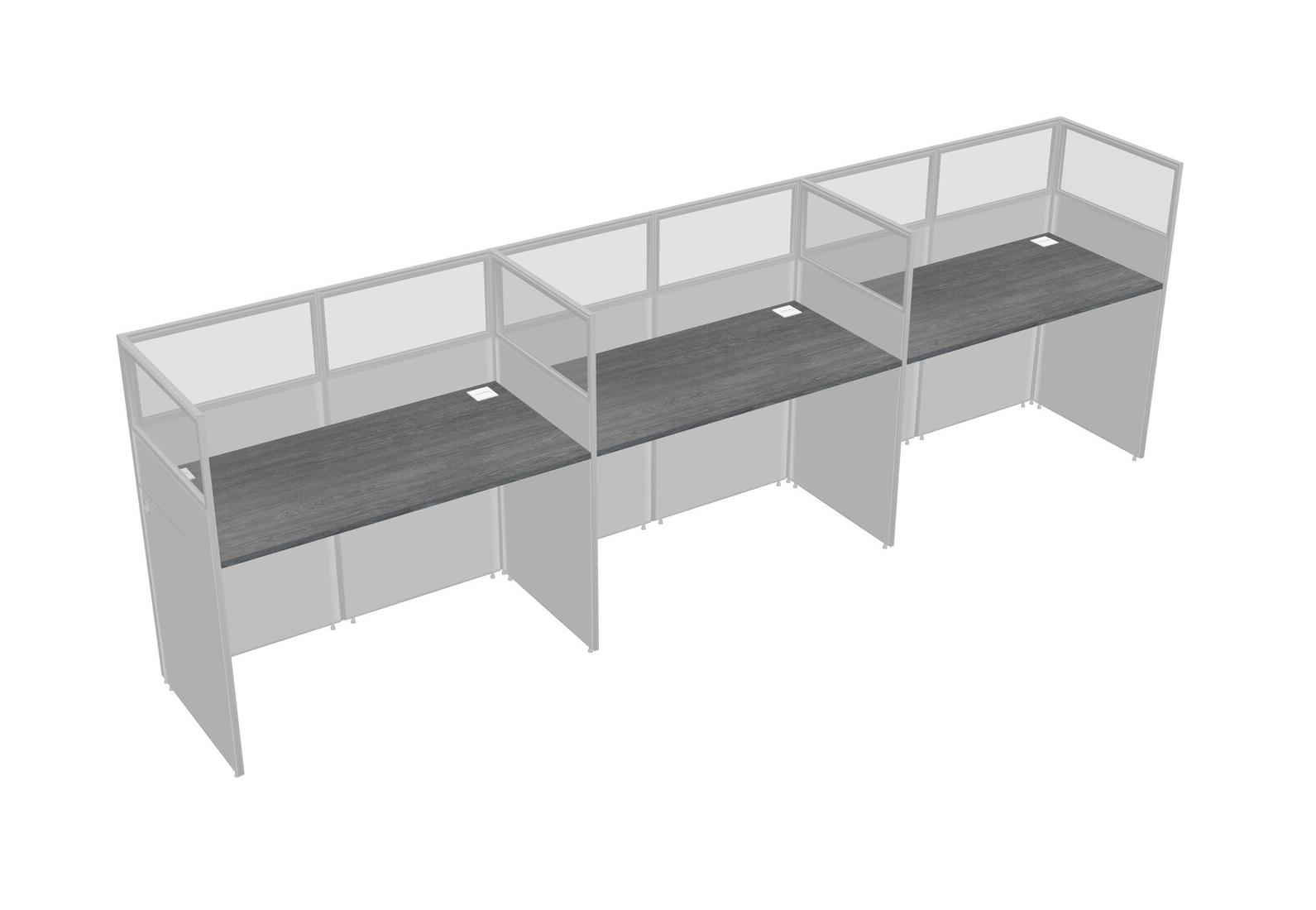 Grey Shared Rectangular Office Cubicle Panel System For 3 Persons