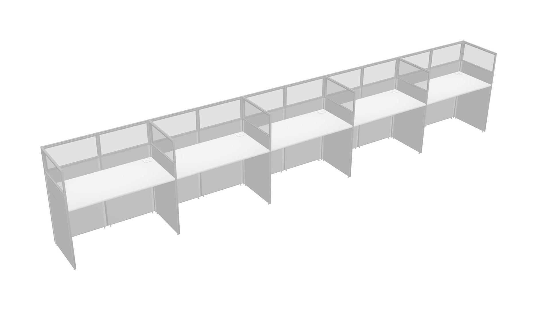 White Shared Rectangular Office Cubicle Panel System For 5 Persons