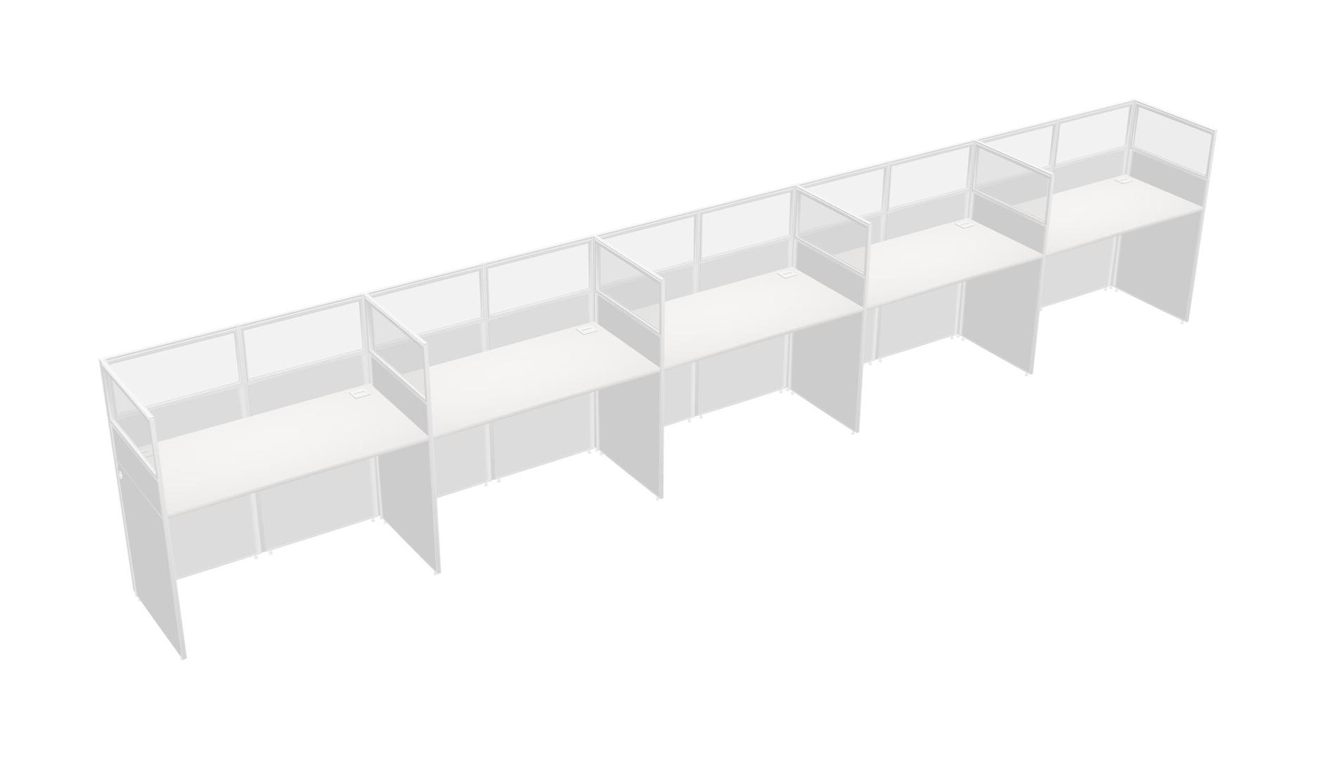 White Shared Rectangular Office Cubicle Panel System For 5 Persons