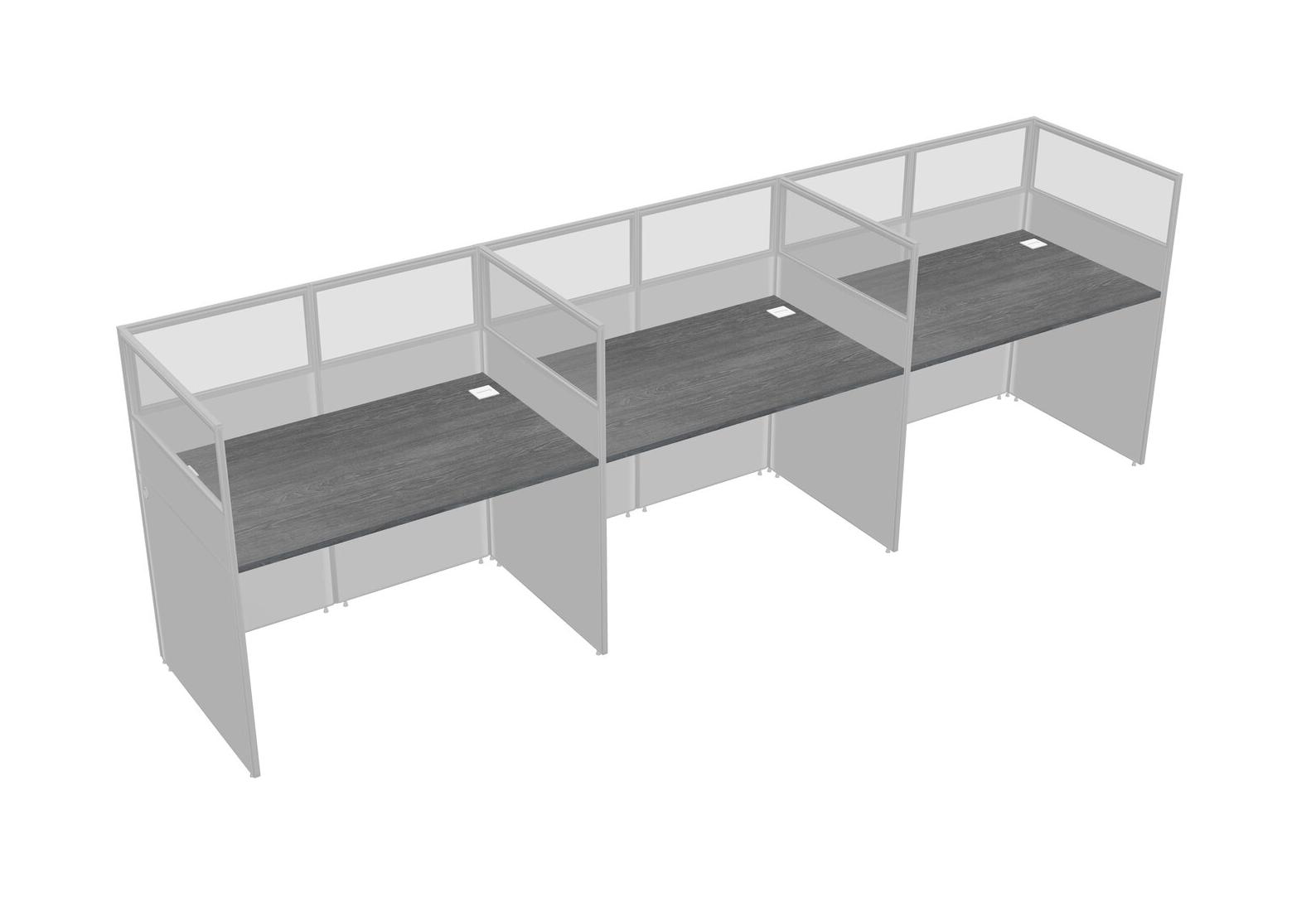 Grey Shared Rectangular Office Cubicle Panel System For 3 Persons