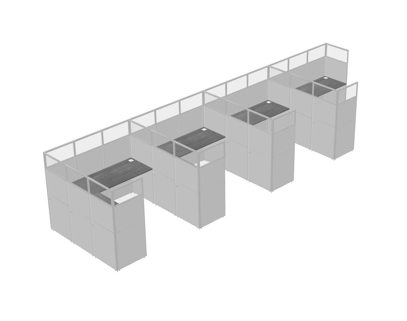Grey Shared L-Shaped Office Cubicle Panel System For 4 Persons