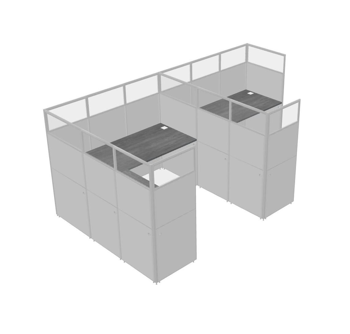 Grey Shared L-Shaped Office Cubicle Panel System For 2 Persons