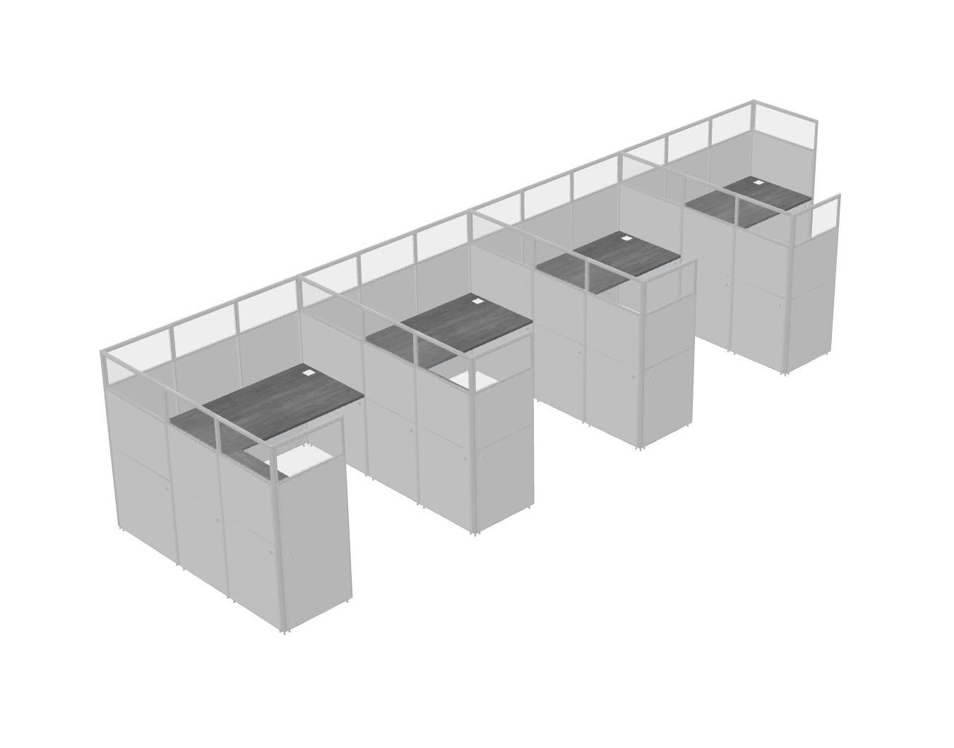 Grey Shared L-Shaped Office Cubicle Panel System For 4 Persons