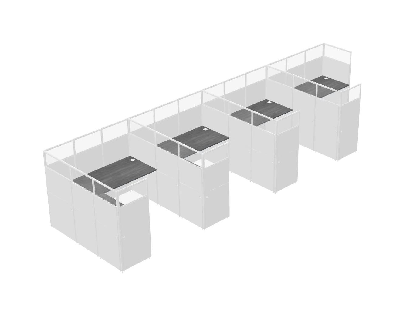 Grey Shared L-Shaped Office Cubicle Panel System For 4 Persons