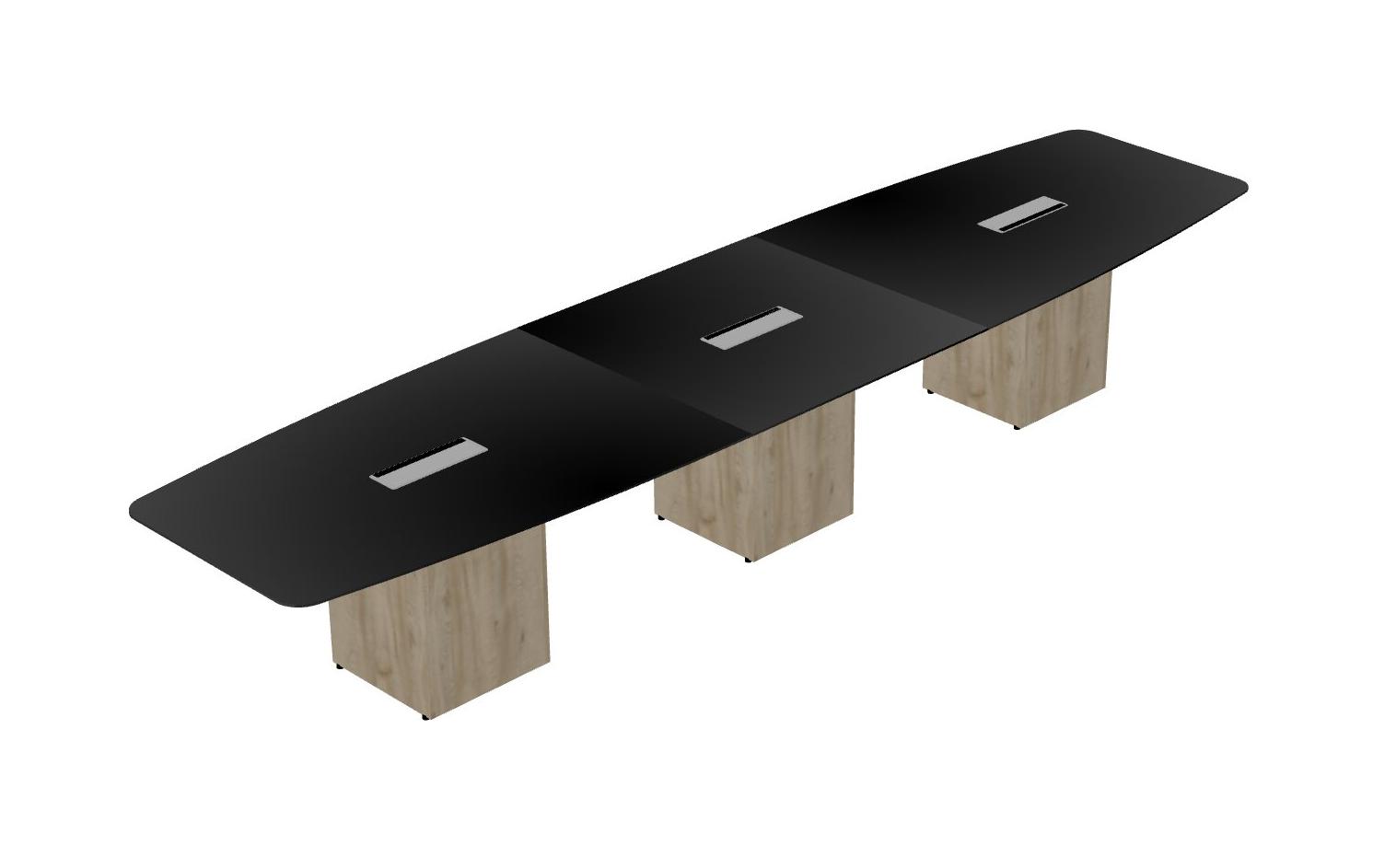Slick Black Boat-shaped Meeting Table For 16 Persons