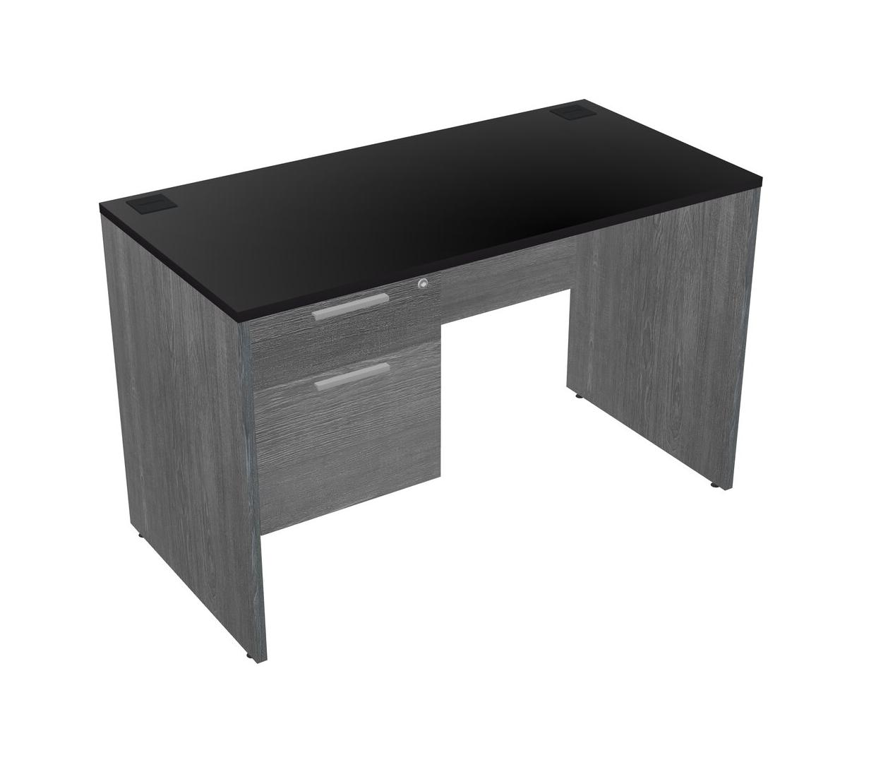 Black Rectangular Office Desk Plus Grey Hanging Drawers