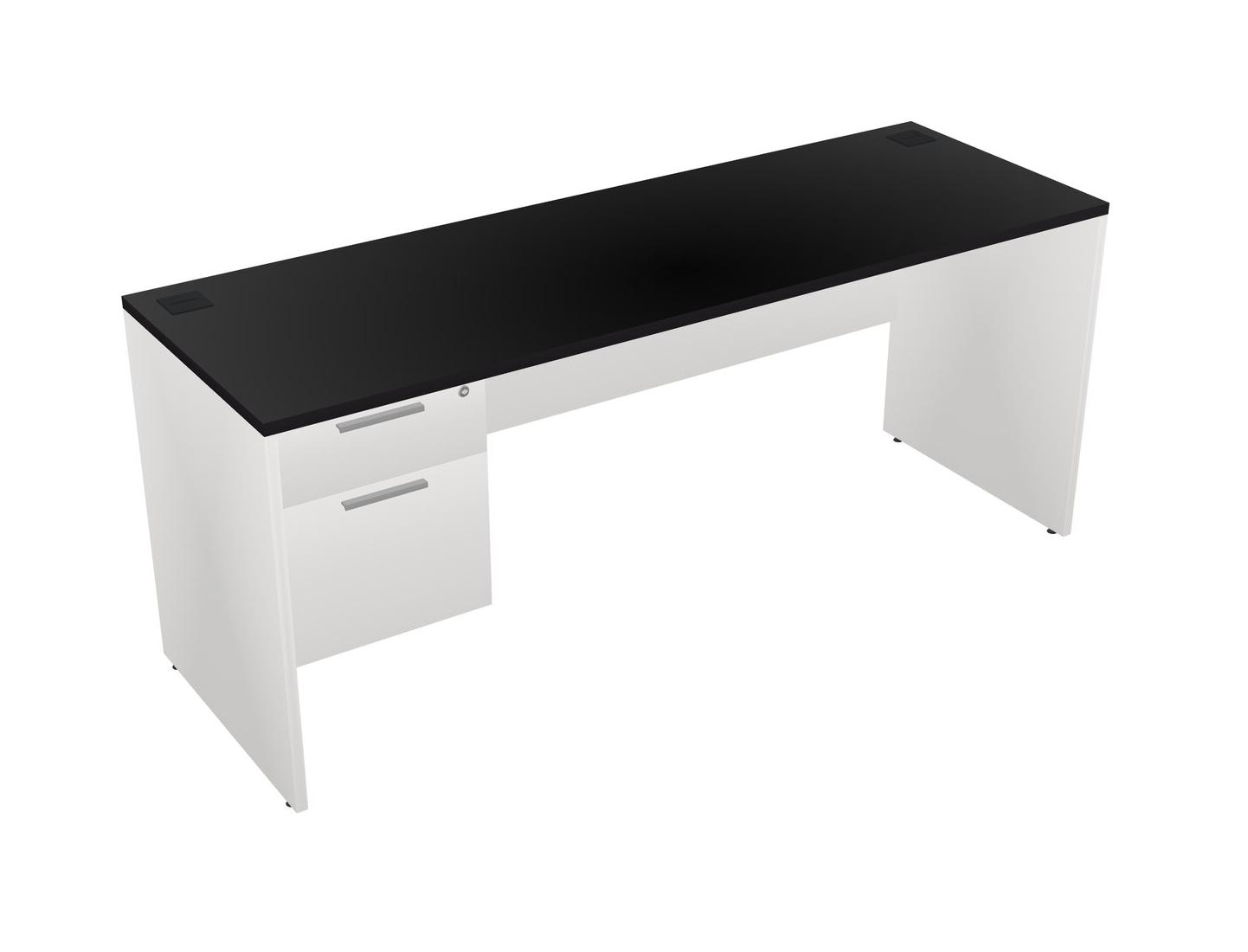 Black Rectangular Office Desk Plus White Hanging Drawers