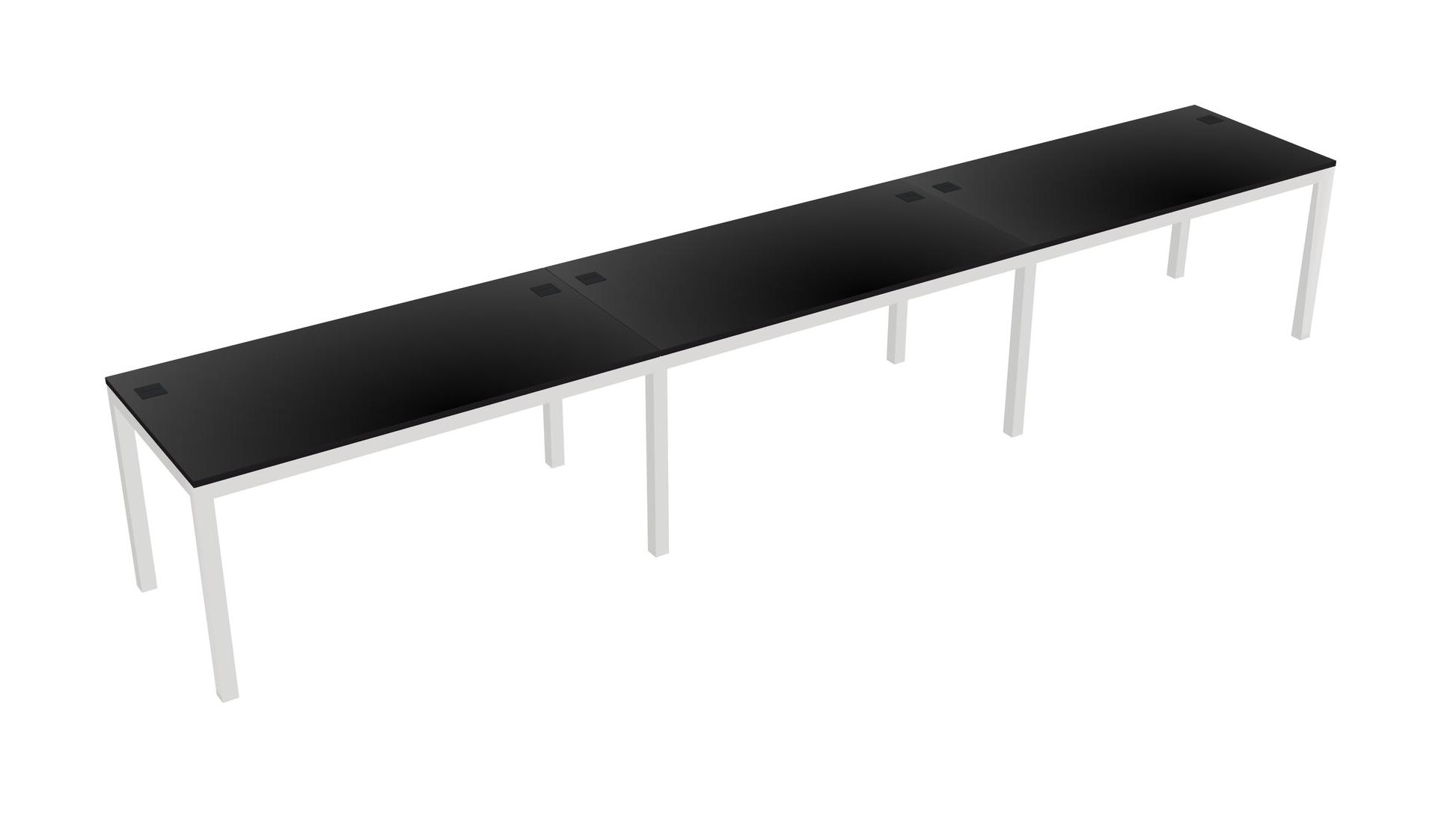 Black Rectangular Office Desk For 3 Persons