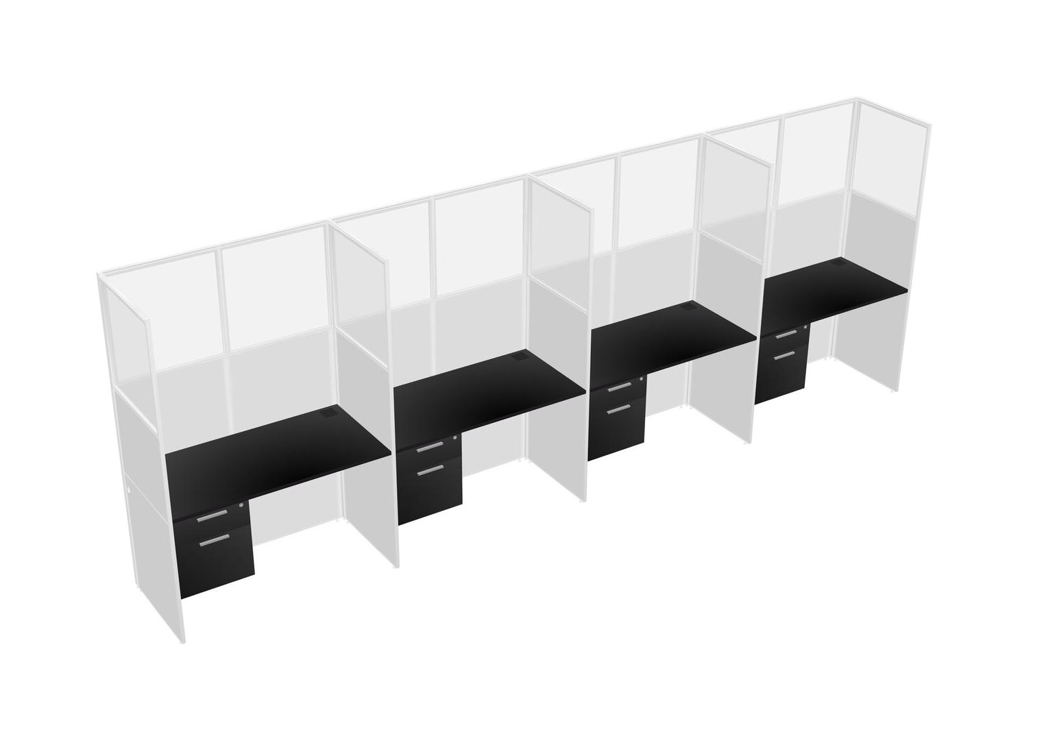 Black Shared Rectangular Office Cubicle Panel System With Hanging Drawers For 4 Persons