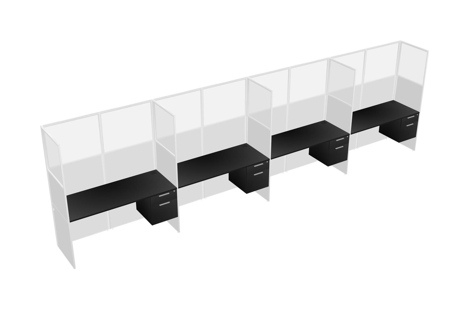 Black Shared Rectangular Office Cubicle Panel System With Hanging Drawers For 4 Persons