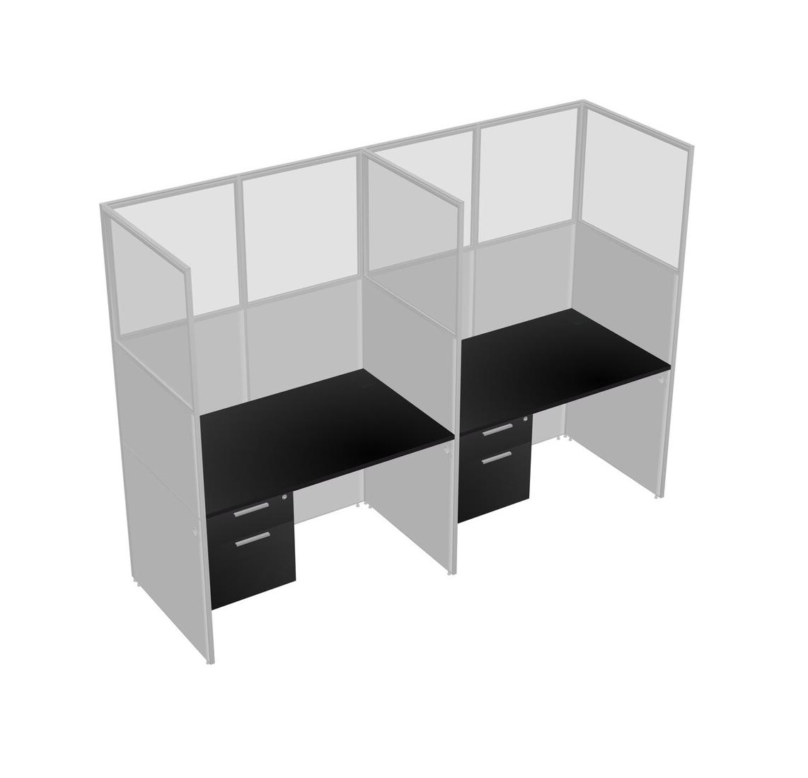 Black Shared Rectangular Office Cubicle Panel System With Hanging Drawers For 2 Persons