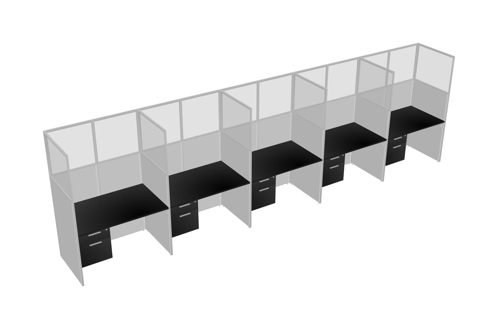 Black Shared Rectangular Office Cubicle Panel System With Hanging Drawers For 5 Persons