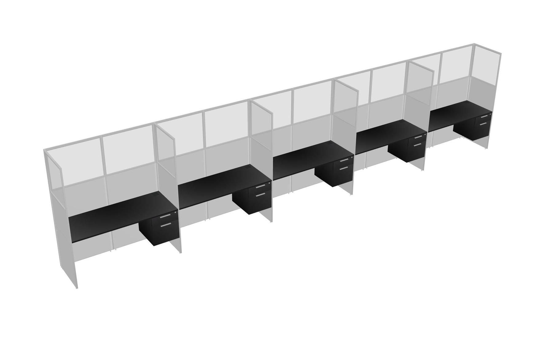 Black Shared Rectangular Office Cubicle Panel System With Hanging Drawers For 5 Persons