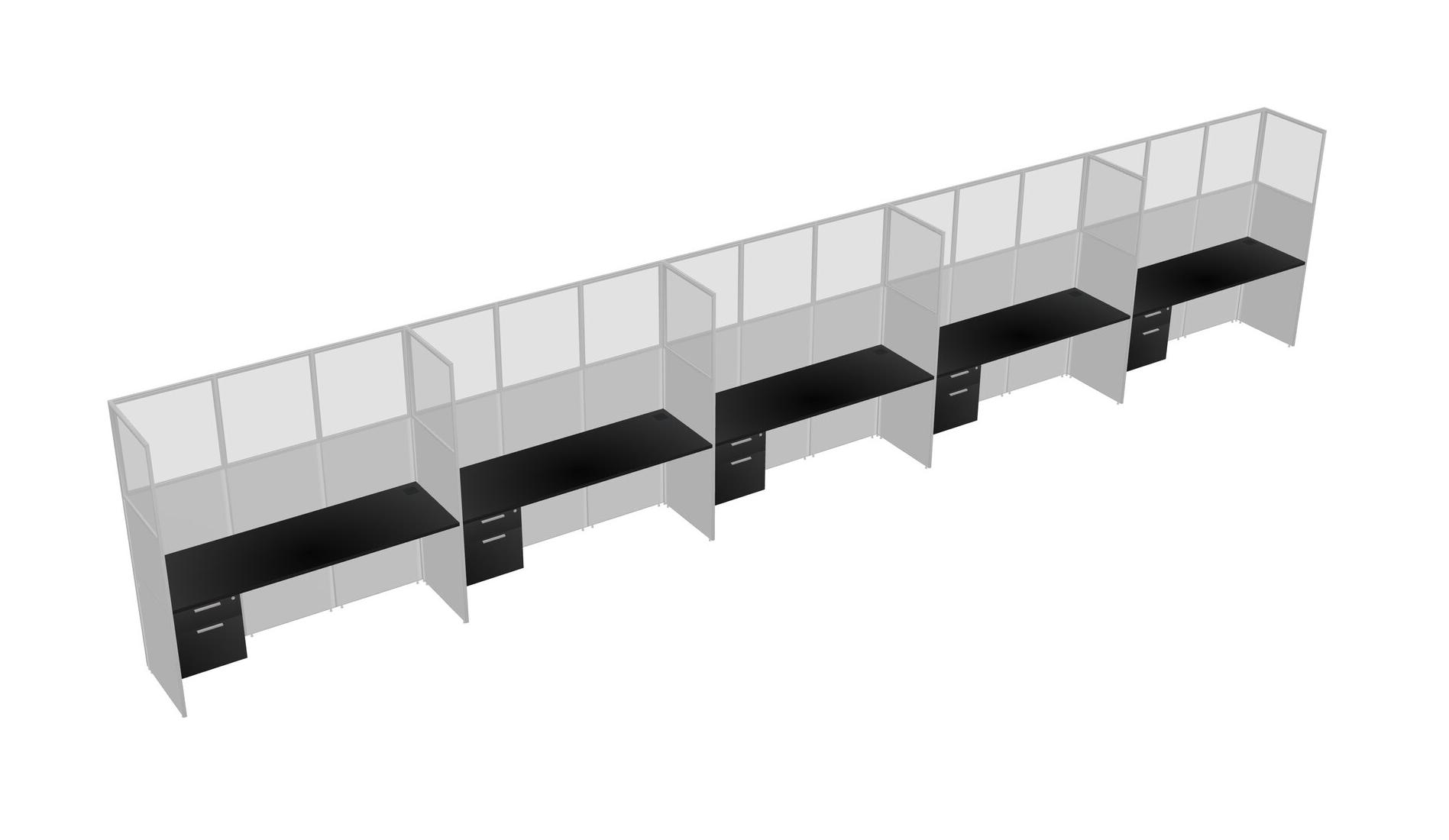 Black Shared Rectangular Office Cubicle Panel System With Hanging Drawers For 5 Persons