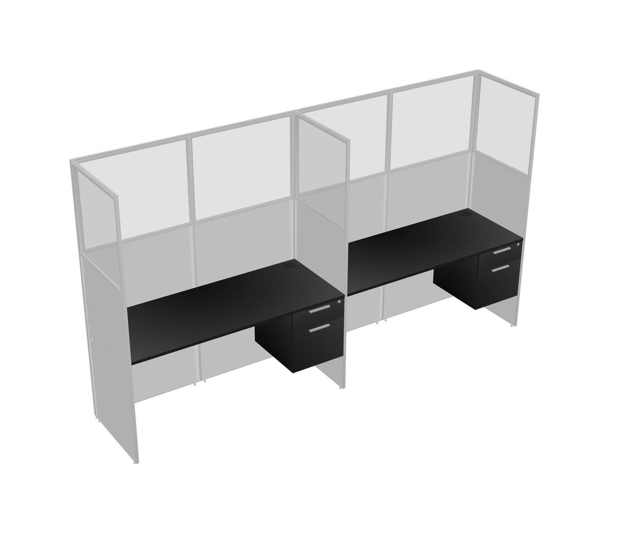 Black Shared Rectangular Office Cubicle Panel System With Hanging Drawers For 2 Persons