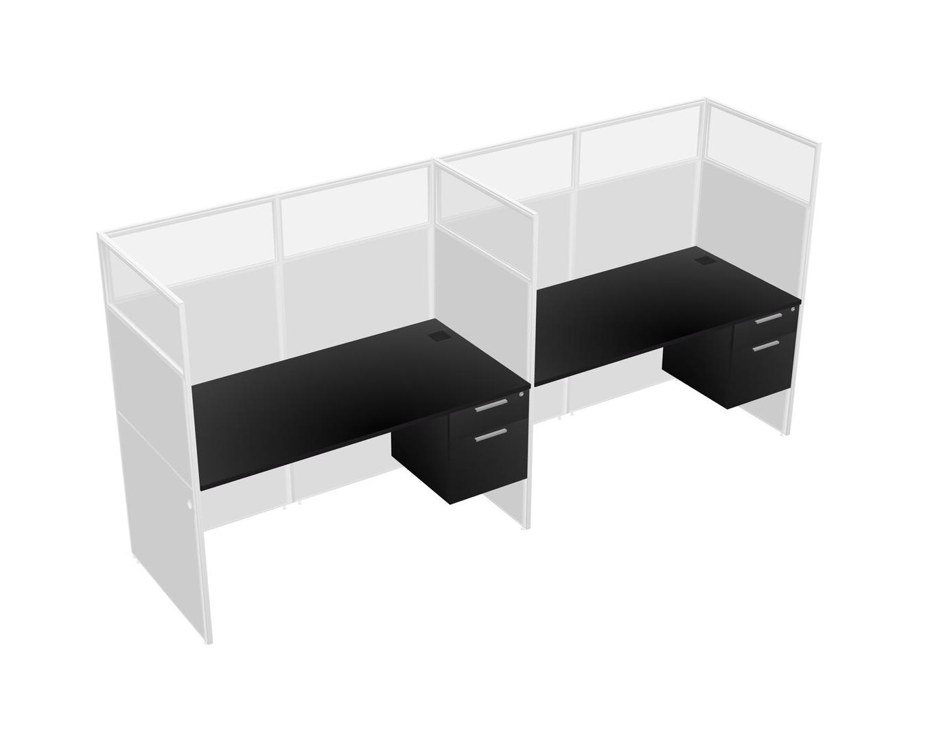 Black Shared Rectangular Office Cubicle Panel System With Hanging Drawers For 2 Persons