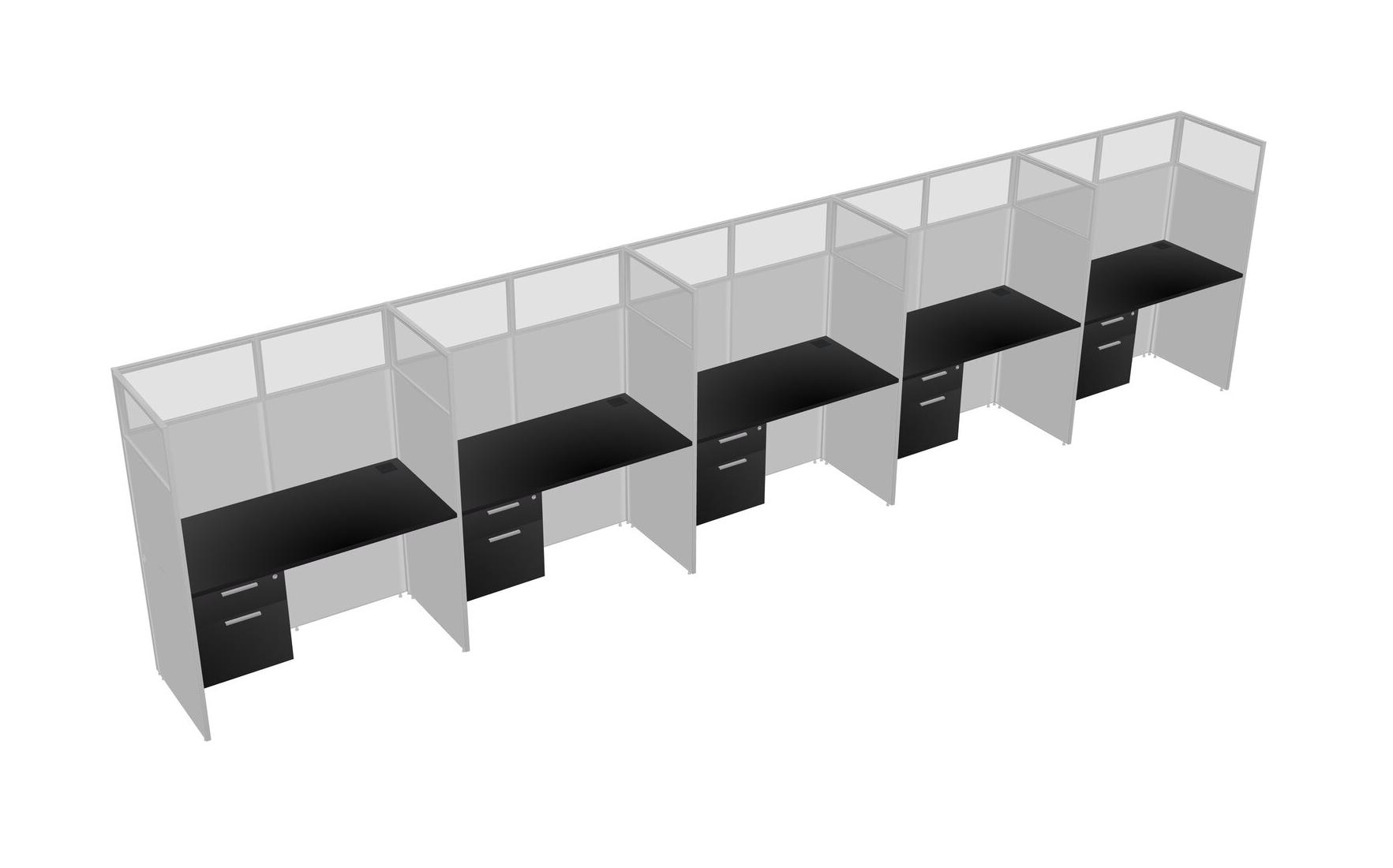 Black Shared Rectangular Office Cubicle Panel System With Hanging Drawers For 5 Persons