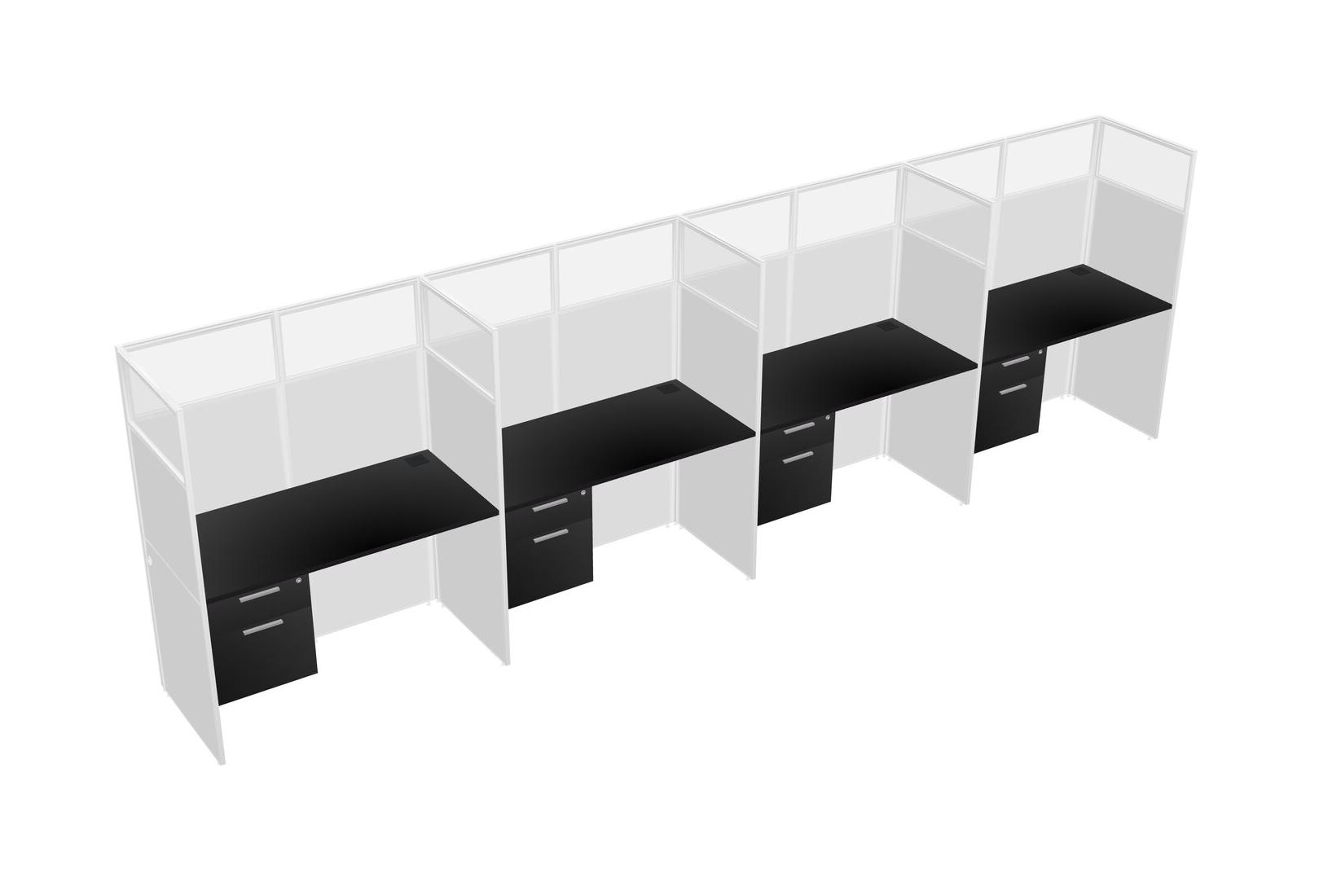 Black Shared Rectangular Office Cubicle Panel System With Hanging Drawers For 4 Persons