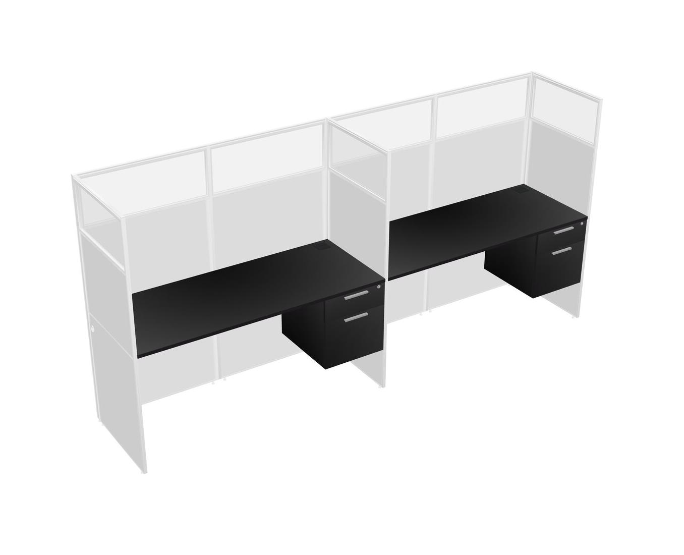 Black Shared Rectangular Office Cubicle Panel System With Hanging Drawers For 2 Persons