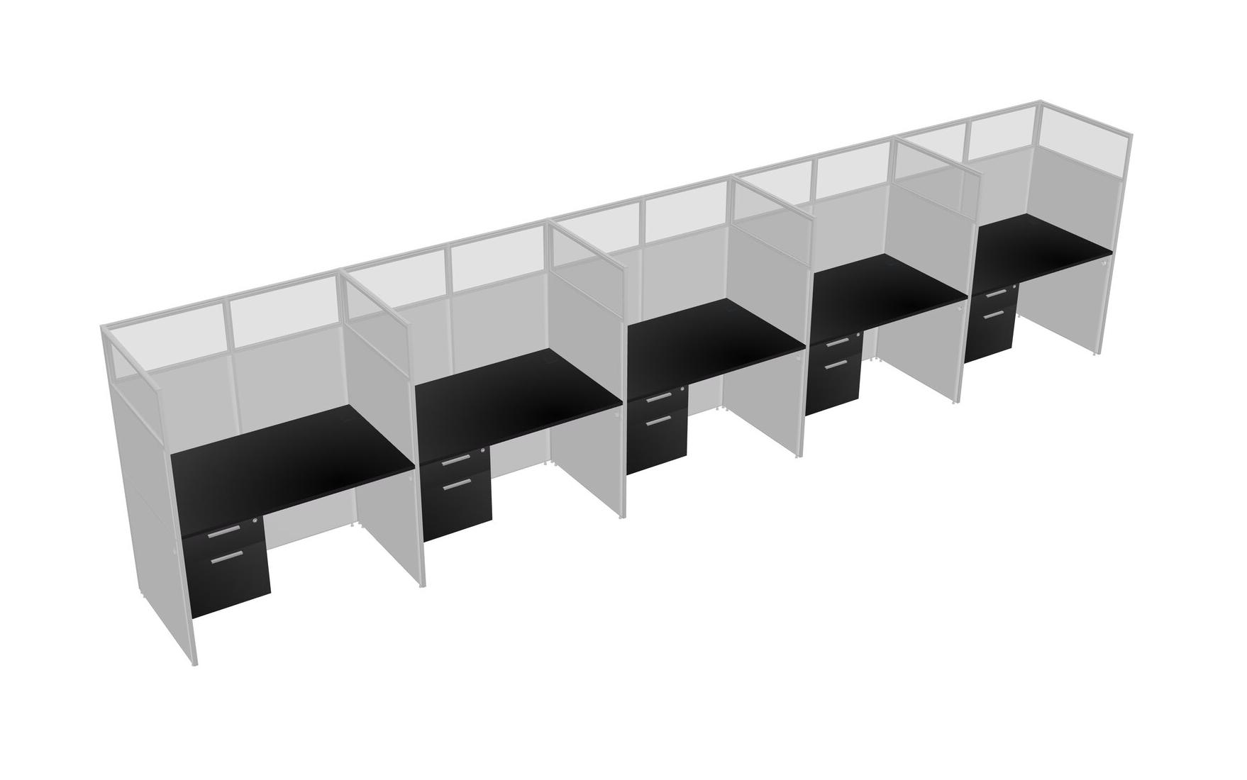 Black Shared Rectangular Office Cubicle Panel System With Hanging Drawers For 5 Persons