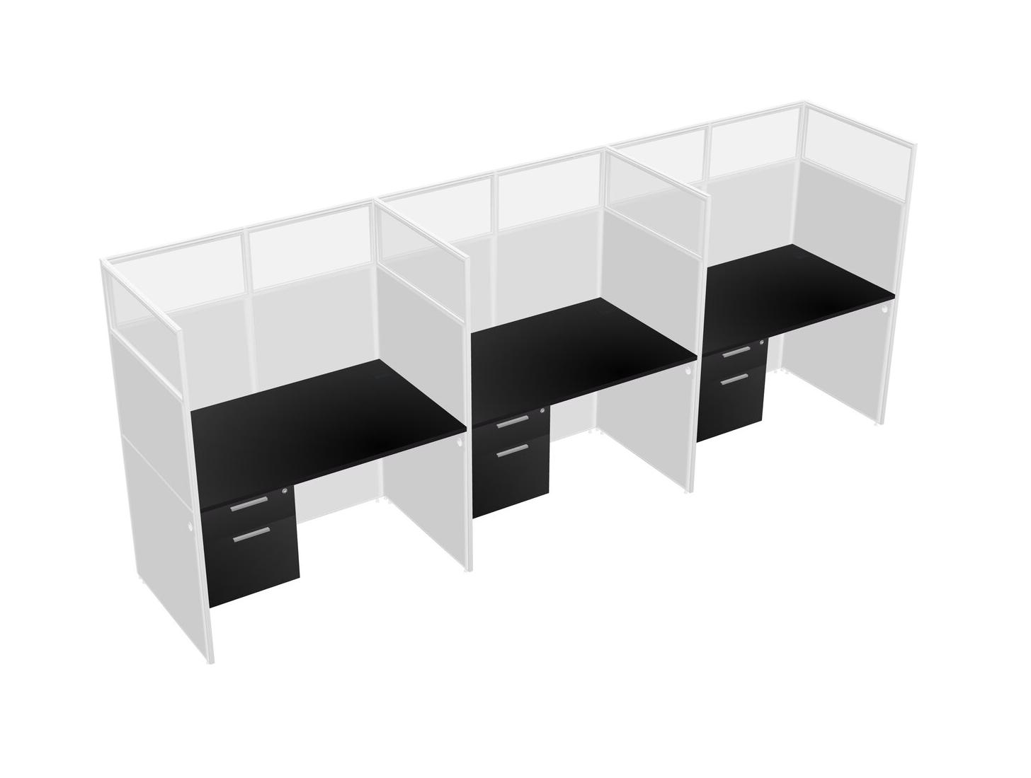 Black Shared Rectangular Office Cubicle Panel System With Hanging Drawers For 3 Persons