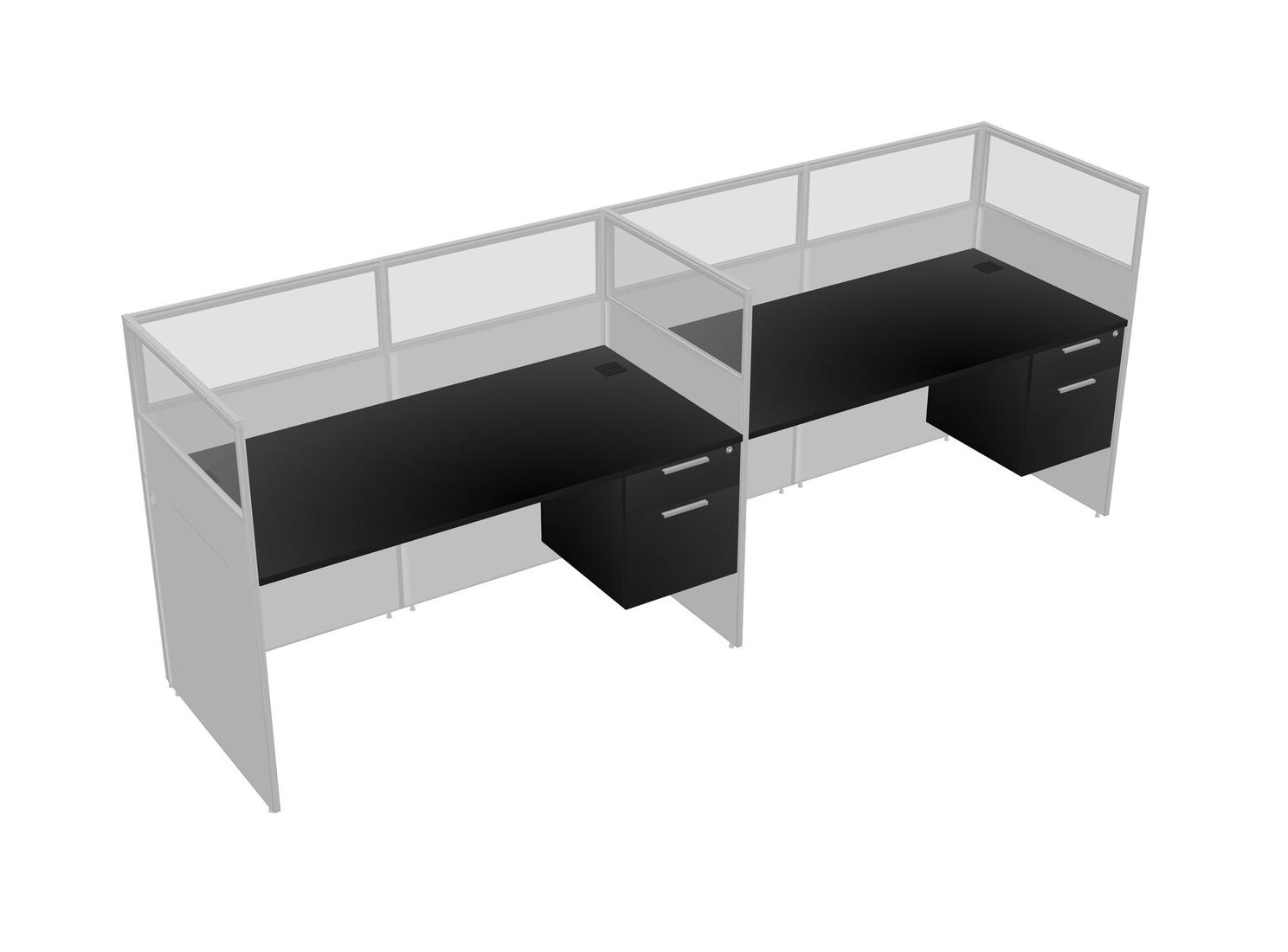 Black Shared Rectangular Office Cubicle Panel System With Hanging Drawers For 2 Persons