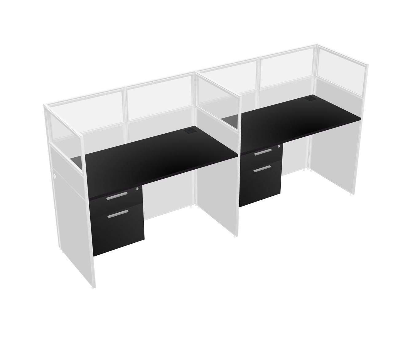 Black Shared Rectangular Office Cubicle Panel System With Hanging Drawers For 2 Persons