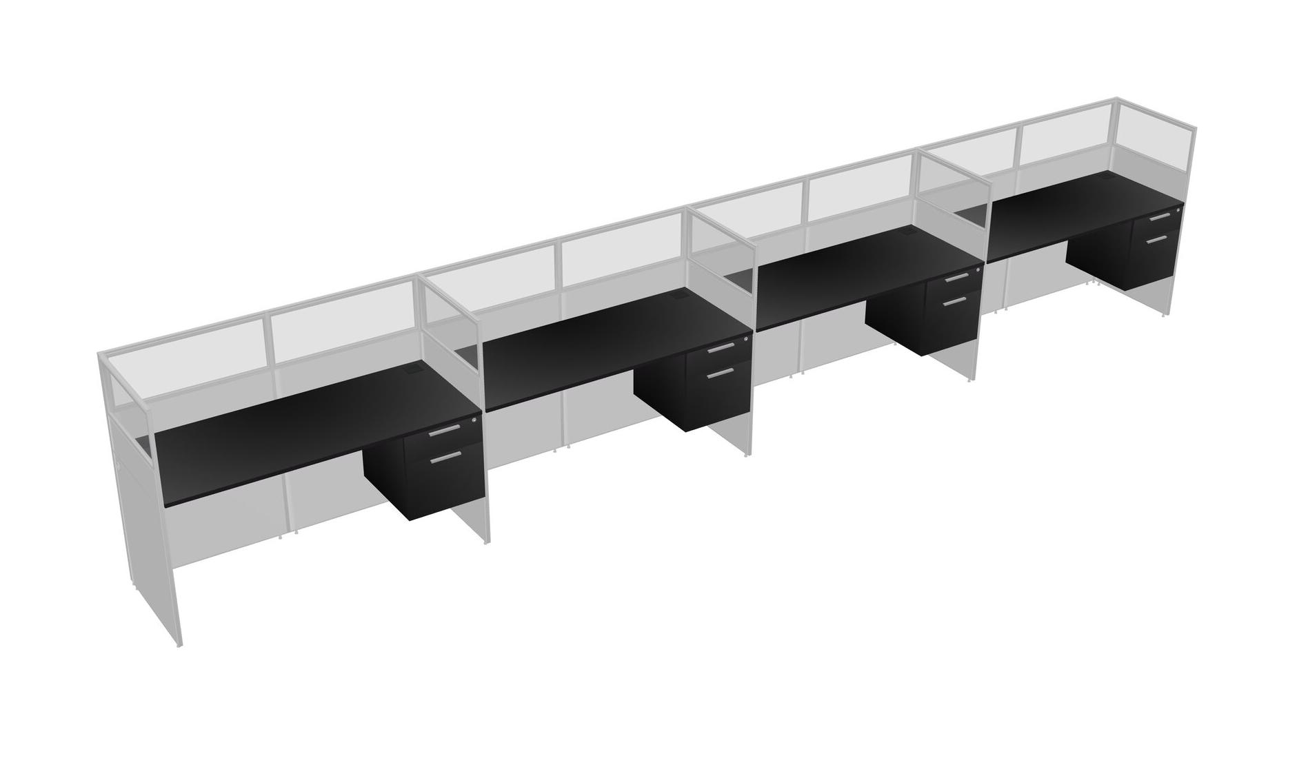 Black Shared Rectangular Office Cubicle Panel System With Hanging Drawers For 4 Persons
